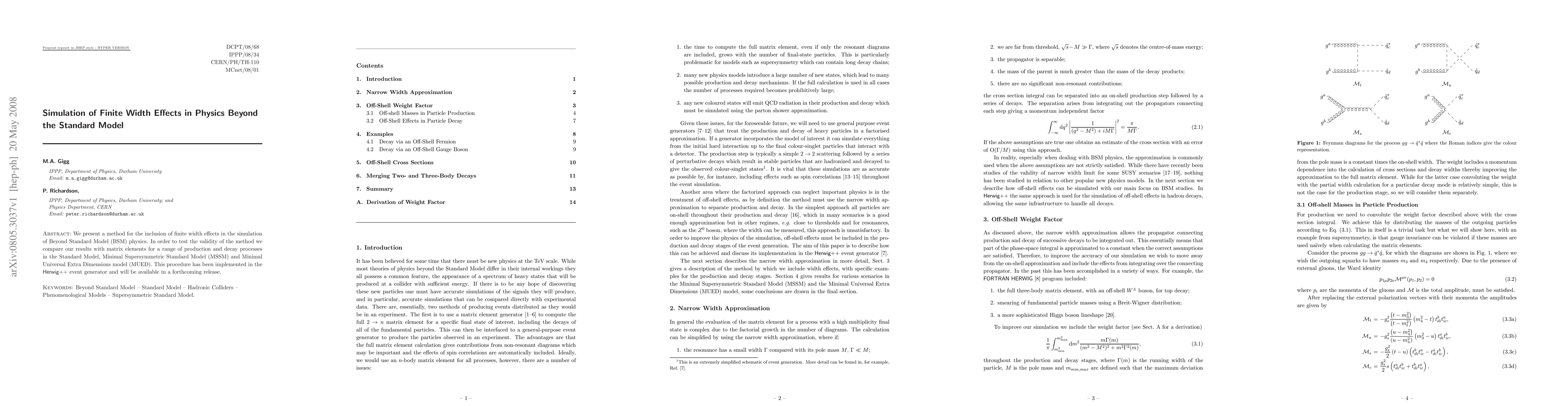 Researchers developed a method to simulate finite width effects in Beyond Standard Model physics, comparing results with known matrix elements and implementing it in the Herwig++ event generator.