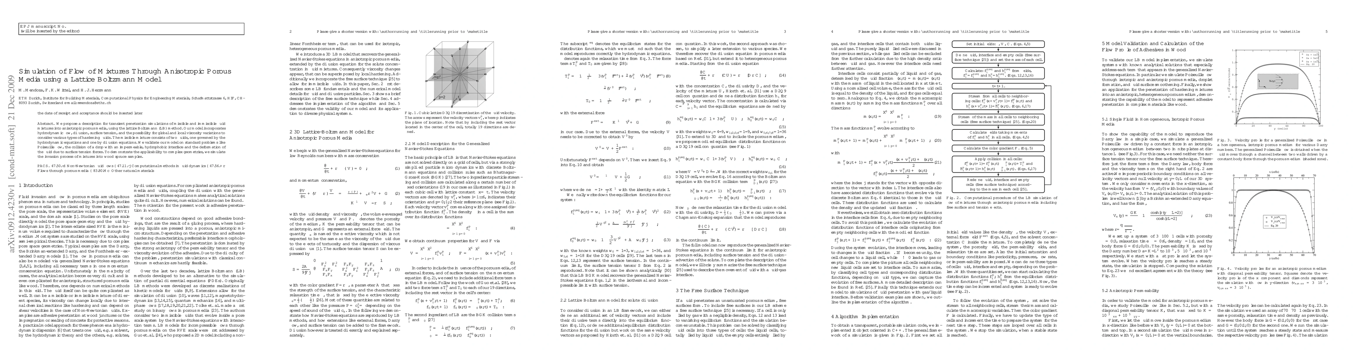 This paper proposes a lattice Boltzmann model for simulating the flow of miscible and immiscible fluid mixtures through anisotropic porous media, incorporating hydrodynamics, diffusion, surface tension, and viscosity variations. The model is validated through standard problems and demonstrated on complex wood spruce samples.