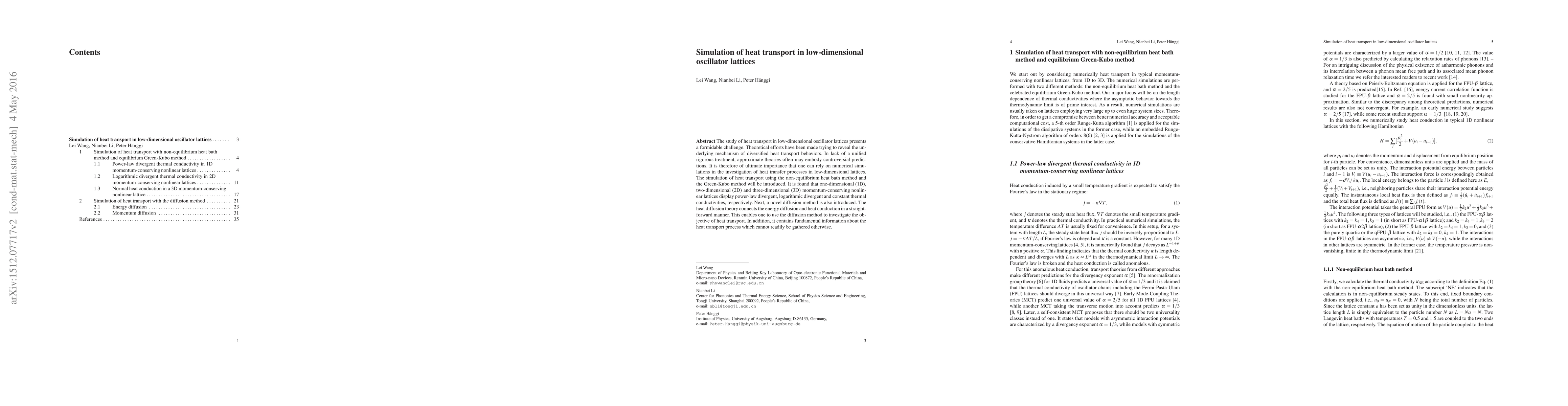This paper investigates heat transport in low-dimensional oscillator lattices using numerical simulations, revealing the distinct thermal conductivities of 1D, 2D, and 3D systems via power-law, logarithmic, and constant divergences respectively. A novel diffusion method is introduced to provide deeper insights into the heat transport process.