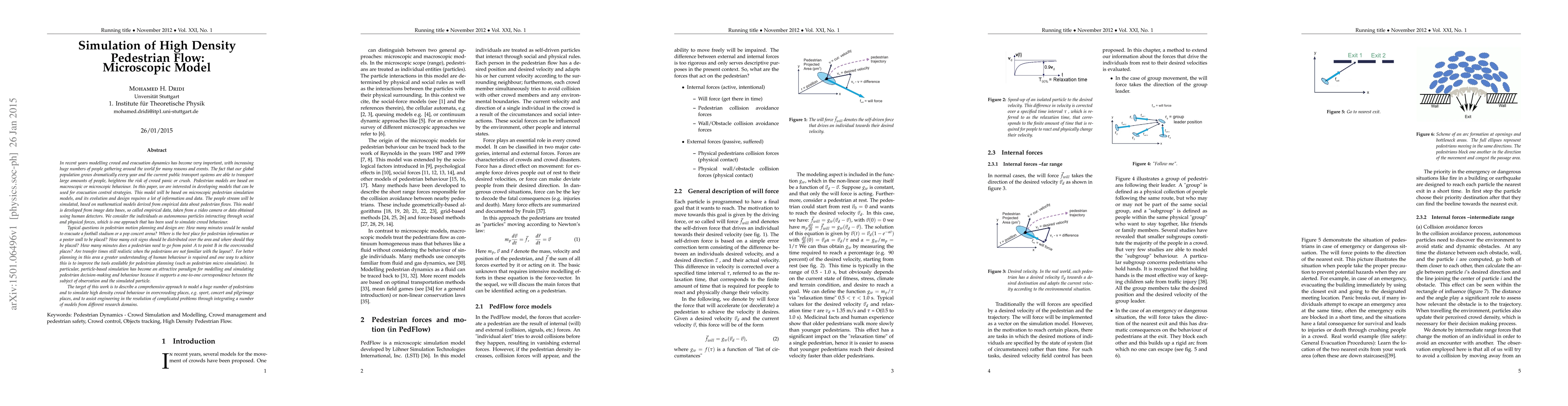 Researchers developed a microscopic pedestrian simulation model to study crowd behavior and evacuation dynamics, using empirical data from video cameras and human detectors. The goal is to create models for evacuation control strategies and mitigate the risk of crowd panic or crush.