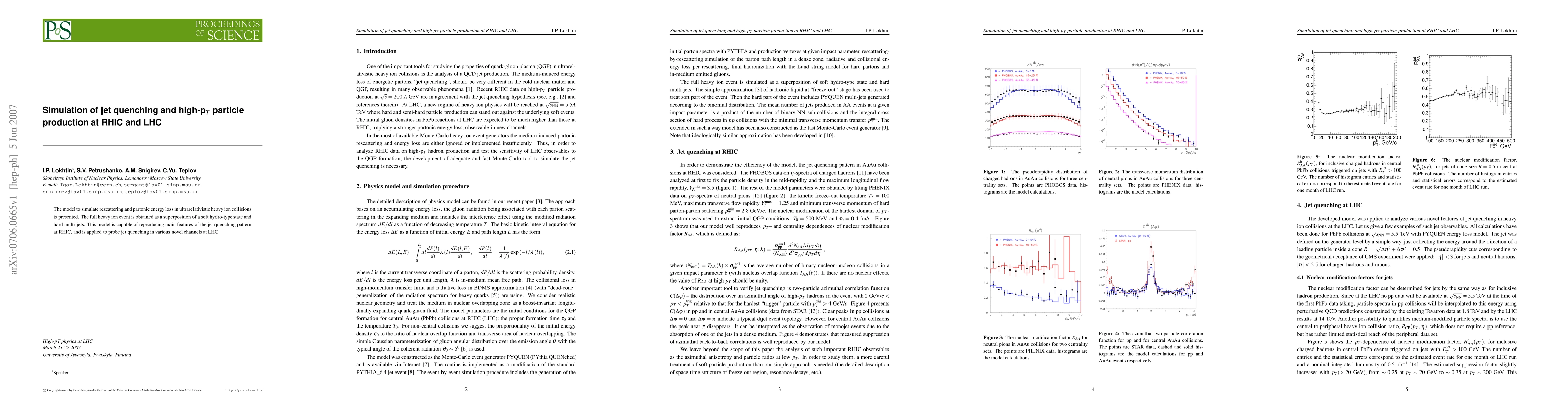 The paper presents a model to simulate partonic energy loss and rescattering in heavy ion collisions, successfully reproducing jet quenching at RHIC and exploring new channels for jet quenching at LHC. The model combines a soft hydro-type state with hard multi-jets to capture the full heavy ion event.