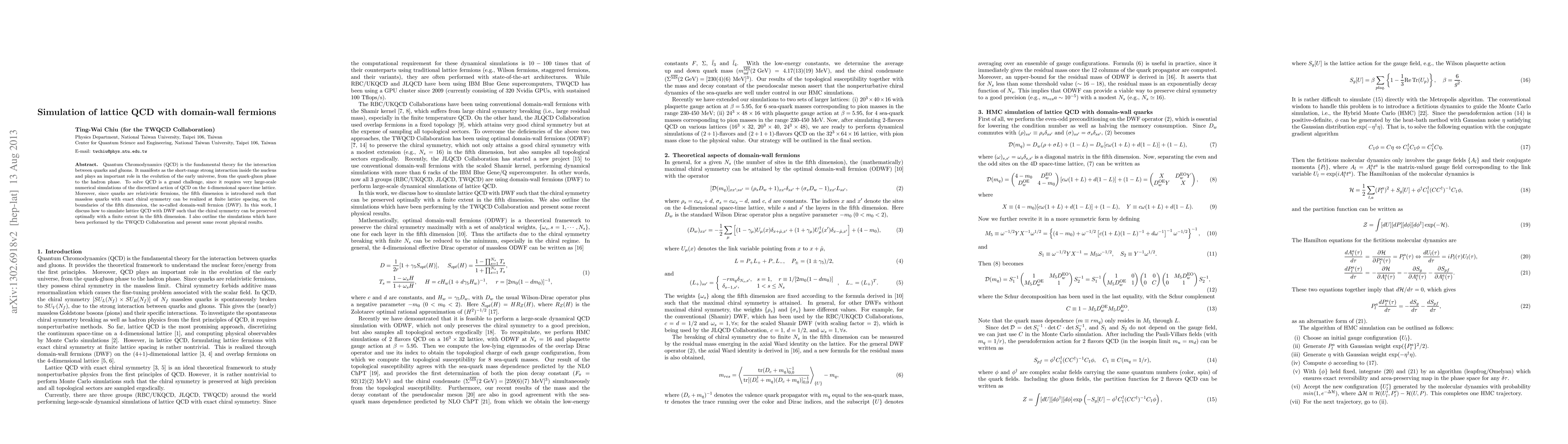 This paper discusses the simulation of Quantum Chromodynamics (QCD) using domain-wall fermions (DWF) to optimally preserve chiral symmetry. The study presents recent results from the TWQCD Collaboration on large-scale numerical simulations of QCD on a 4D space-time lattice.