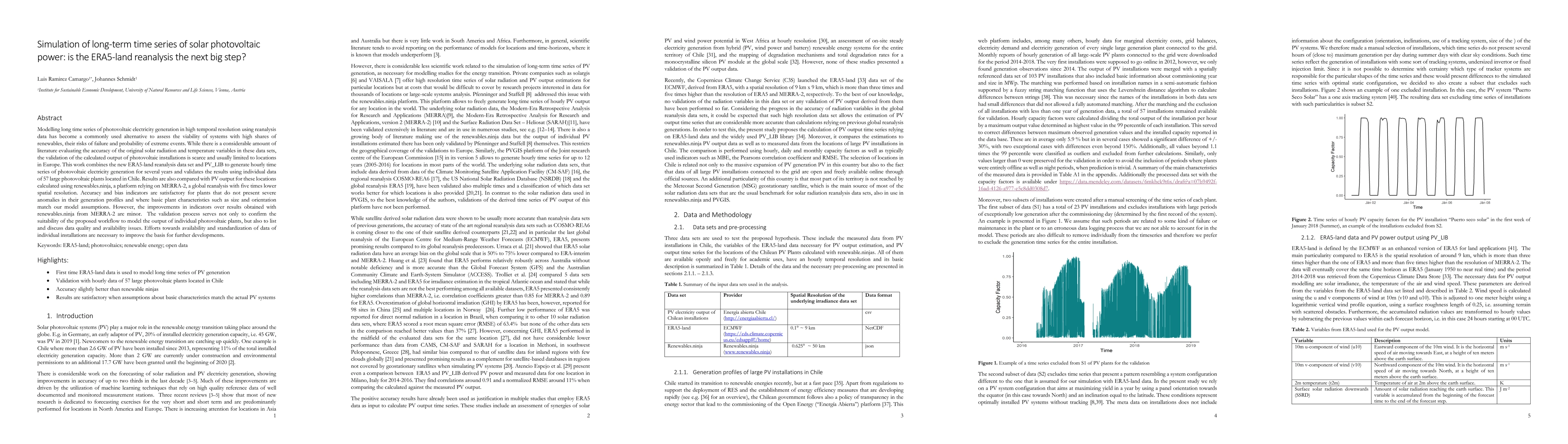 Modelling long time series of photovoltaic electricity generation in high temporal resolution using reanalysis data has become a commonly used alternative to assess the viability of systems with high shares of renewables, their risks of failure and probability of extreme events. While there is a considerable amount of literature evaluating the accuracy of the original solar radiation and temperature variables in these data sets, the validation of the calculated output of photovoltaic installations is scarce and usually limited to locations in Europe. This work combines the new ERA5-land reanalysis data set and PV_LIB to generate hourly time series of photovoltaic electricity generation for several years and validates the results using individual data of 57 large photovoltaic plants located in Chile. Results are also compared with PV output for these locations calculated using renewables.ninja, a platform relying on MERRA-2, a global reanalysis with five times lower spatial resolution. Accuracy and bias indicators are satisfactory for plants that do not present severe anomalies in their generation profiles and where basic plant characteristics such as size and orientation match our model assumptions. However, the improvements in indicators over results obtained with renewables.ninja from MERRA-2 are minor. The validation process serves not only to confirm the suitability of the proposed workflow to model the output of individual photovoltaic plants, but also to list and discuss data quality and availability issues. Efforts towards availability and standardization of data of individual installations are necessary to improve the basis for further developments.