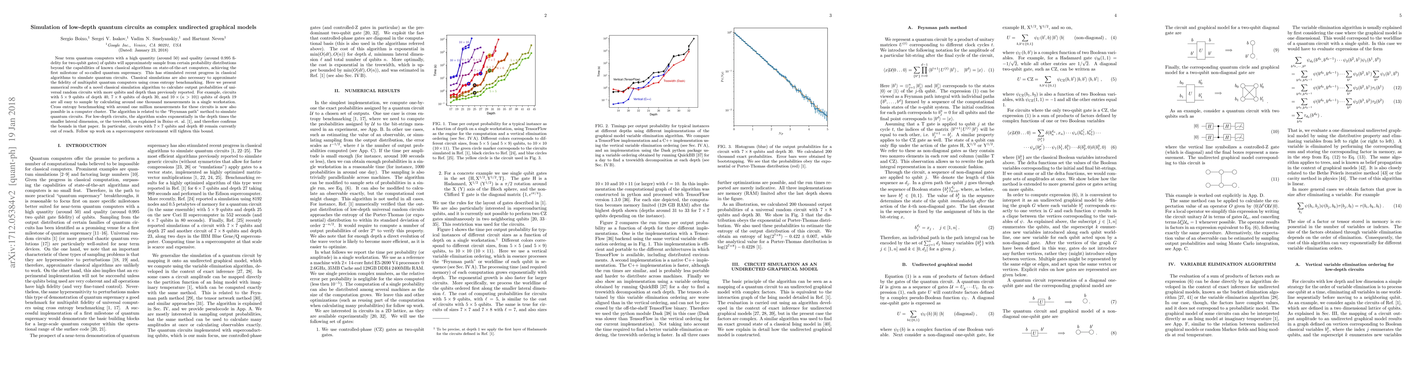 This paper presents a classical simulation algorithm to efficiently sample from low-depth quantum circuits, demonstrating its effectiveness on a single workstation. The algorithm can handle circuits with up to 50 qubits and depths up to 37, confirming theoretical bounds on scalability.