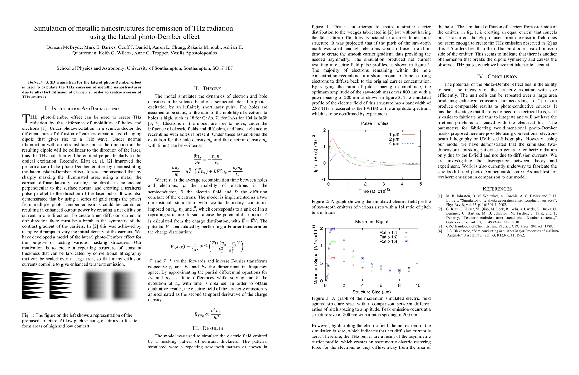 A 2D simulation for the lateral photo-Dember effect is used to calculate the THz emission of metallic nanostructures due to ultrafast diffusion of carriers in order to realize a series of THz emitters.