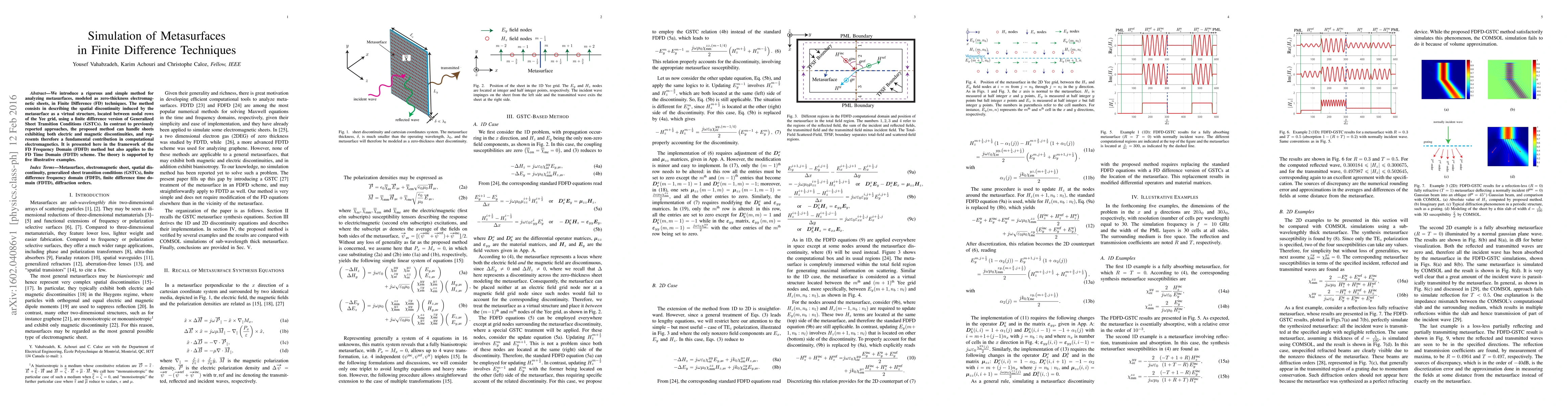 This paper presents a novel method for simulating metasurfaces using Finite Difference techniques, describing spatial discontinuities as virtual structures within the Yee grid via a finite difference version of Generalized Sheet Transition Conditions. Unlike previous methods, it effectively handles both electric and magnetic discontinuities, contributing significantly to computational electromagnetics and applicable to both FDFD and FDTD schemes, as demonstrated by five examples.