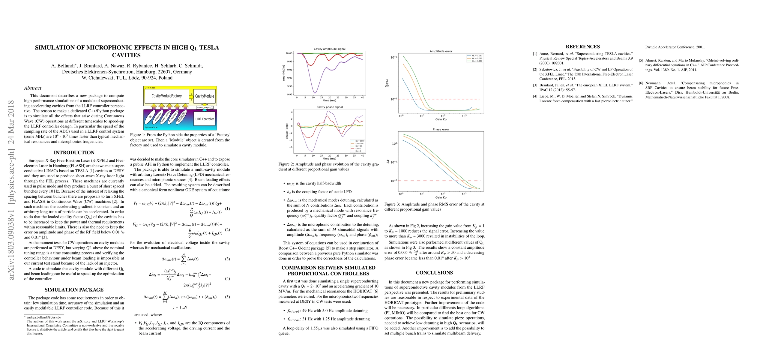 This document describes a new package to compute high performance simulations of a module of superconducting accelerating cavities from the LLRF controller perspective. The reason to make a dedicated C++/Python package is to simulate all the effects that arise during Continuous Wave (CW) operations at different timescales to speed-up the LLRF controller design. In particular the speed of the sampling rate of the ADCs used in a LLRF control system (some MHz) are $10^4$ - $10^5$ times faster than typical mechanical resonances and microphonics frequencies.