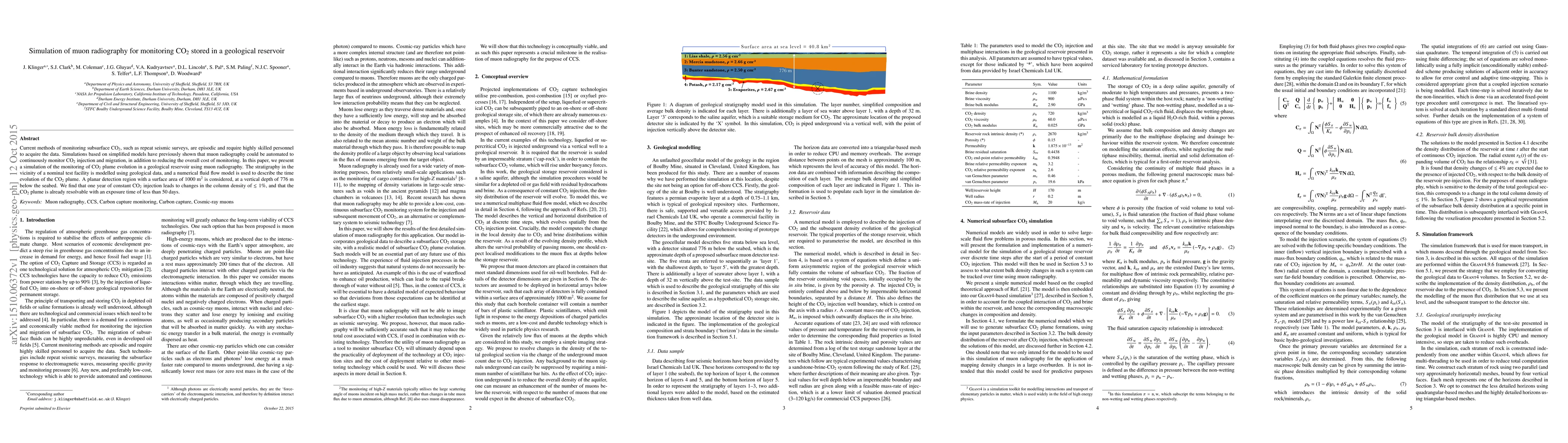 Current methods of monitoring subsurface CO$_2$, such as repeat seismic surveys, are episodic and require highly skilled personnel to acquire the data. Simulations based on simplified models have previously shown that muon radiography could be automated to continuously monitor CO$_2$ injection and migration, in addition to reducing the overall cost of monitoring. In this paper, we present a simulation of the monitoring of CO$_2$ plume evolution in a geological reservoir using muon radiography. The stratigraphy in the vicinity of a nominal test facility is modelled using geological data, and a numerical fluid flow model is used to describe the time evolution of the CO$_2$ plume. A planar detection region with a surface area of 1000 m$^2$ is considered, at a vertical depth of 776 m below the seabed. We find that one year of constant CO$_2$ injection leads to changes in the column density of $\lesssim 1\%$, and that the CO$_2$ plume is already resolvable with an exposure time of less than 50 days.