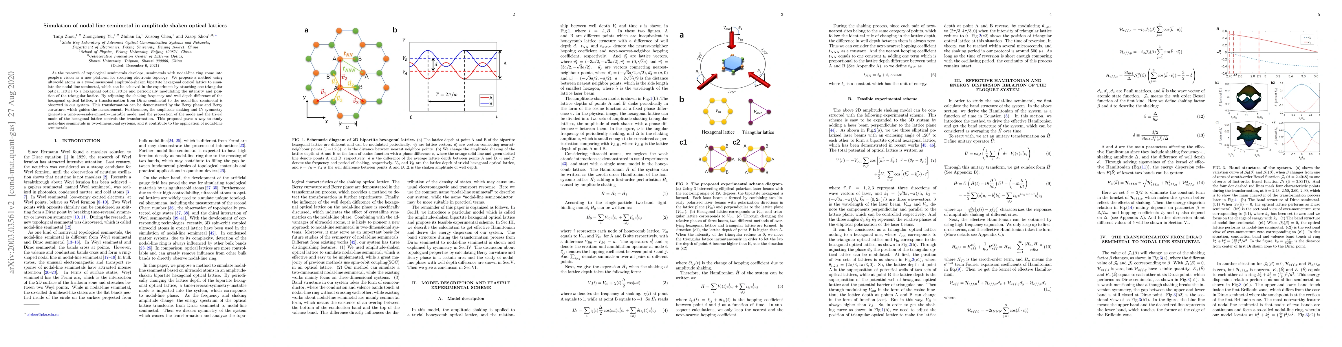 This paper proposes a method to simulate nodal-line semimetals using ultracold atoms in amplitude-shaken optical lattices, achieved by modulating a hexagonal lattice with an attached triangular lattice. The study observes the transformation from Dirac to nodal-line semimetal through energy spectrum analysis and investigates changes in Berry curvature and phase to guide experimental measurement.