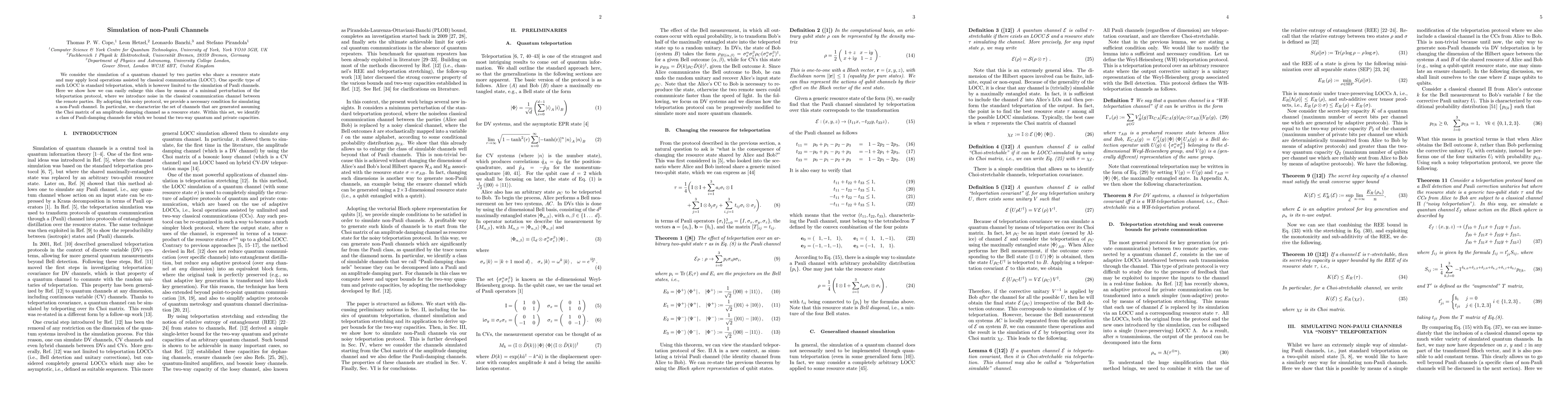This paper explores the simulation of quantum channels beyond Pauli channels using a modified teleportation protocol with added classical communication noise. It identifies a class of Pauli-damping channels and bounds their two-way quantum and private capacities.