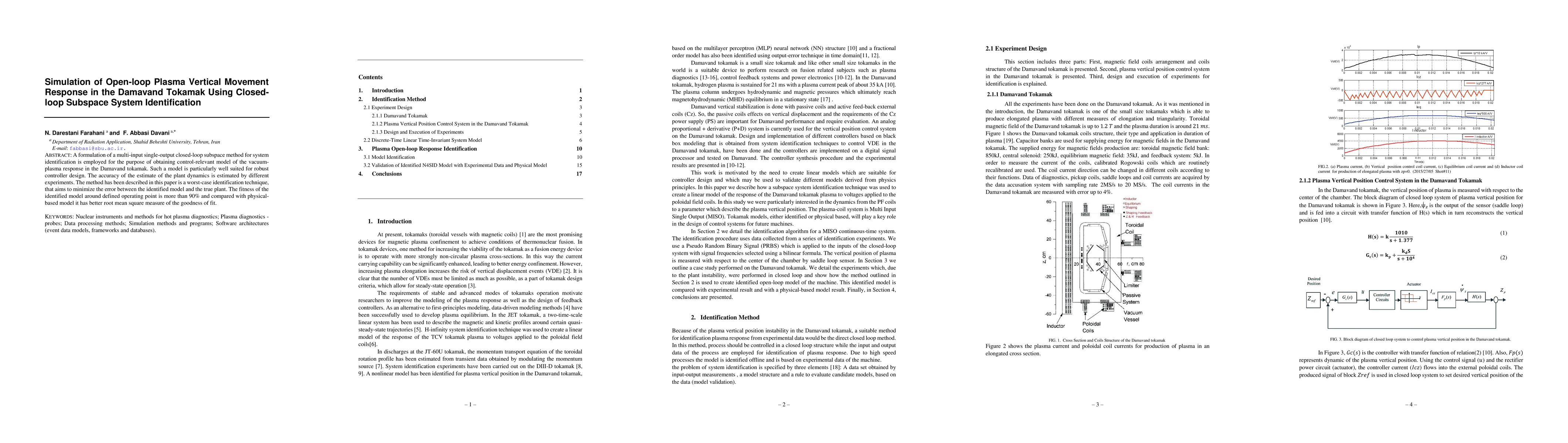 A formulation of a multi-input single-output closed-loop subspace method for system identification is employed for the purpose of obtaining control-relevant model of the vacuum-plasma response in the Damavand tokamak. Such a model is particularly well suited for robust controller design. The accuracy of the estimate of the plant dynamics is estimated by different experiments. The method has been described in this paper is a worst-case identification technique, that aims to minimize the error between the identified model and the true plant. The fitness of the identified model around defined operating point is more than 90% and compared with physical-based model it has better root mean square measure of the goodness of fit.