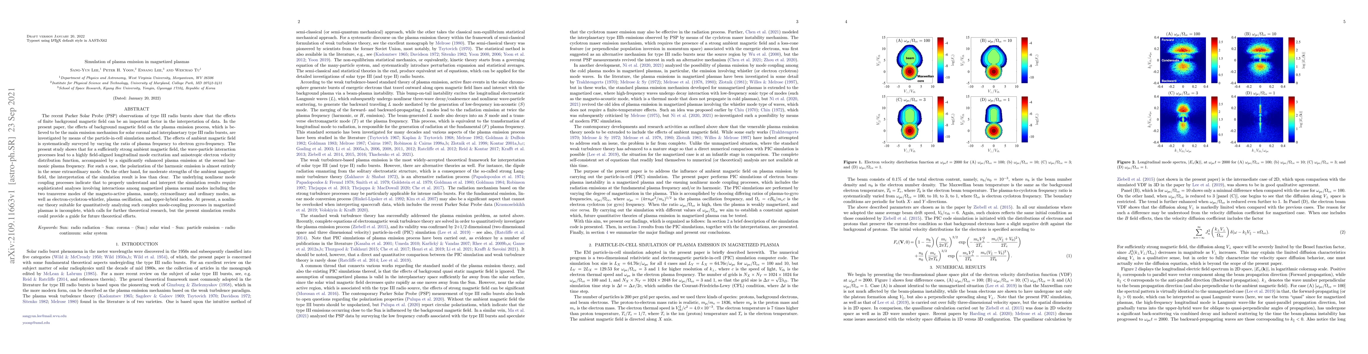 This paper investigates the impact of background magnetic fields on plasma emission processes using particle-in-cell simulations, revealing enhanced emission at the second harmonic plasma frequency under strong magnetic fields. For moderate fields, complex nonlinear mode coupling complicates interpretation, highlighting the need for advanced theoretical models to analyze interactions among various plasma modes.