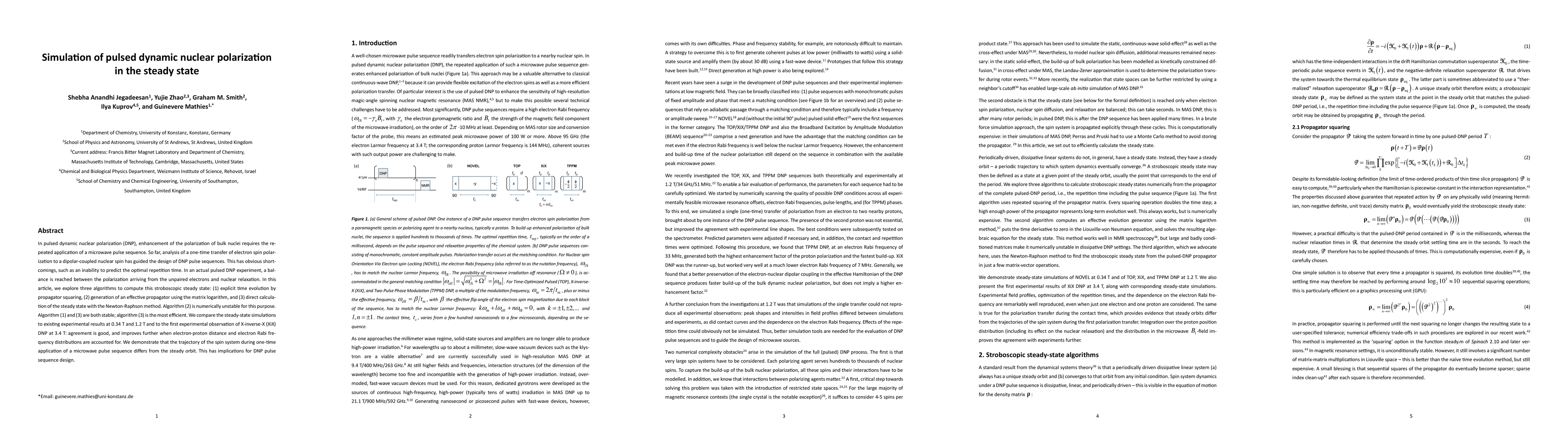 The research explores three algorithms for computing the stroboscopic steady state in pulsed dynamic nuclear polarization (DNP): explicit time evolution by propagator squaring, generation of an effective propagator using the matrix logarithm, and direct calculation of the steady state with the Newton-Raphson method.