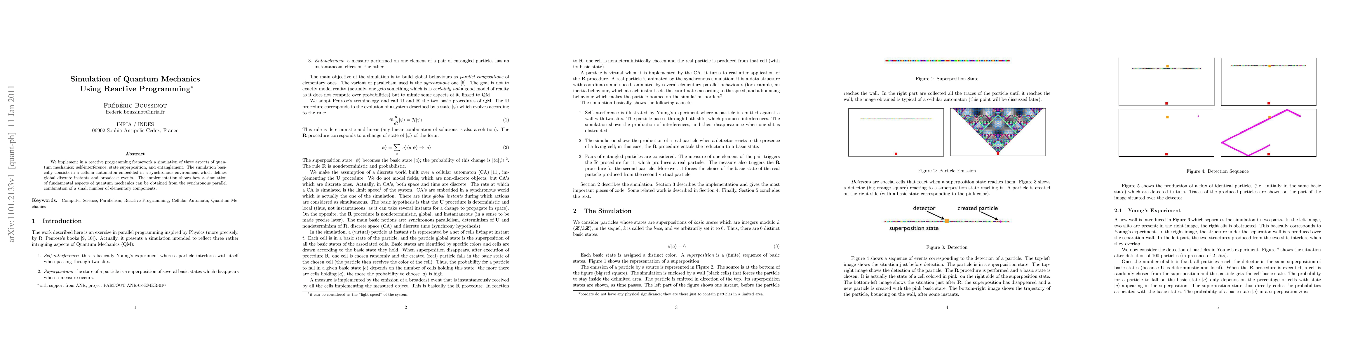 Researchers developed a reactive programming framework to simulate key aspects of quantum mechanics, including self-interference, state superposition, and entanglement using cellular automata.