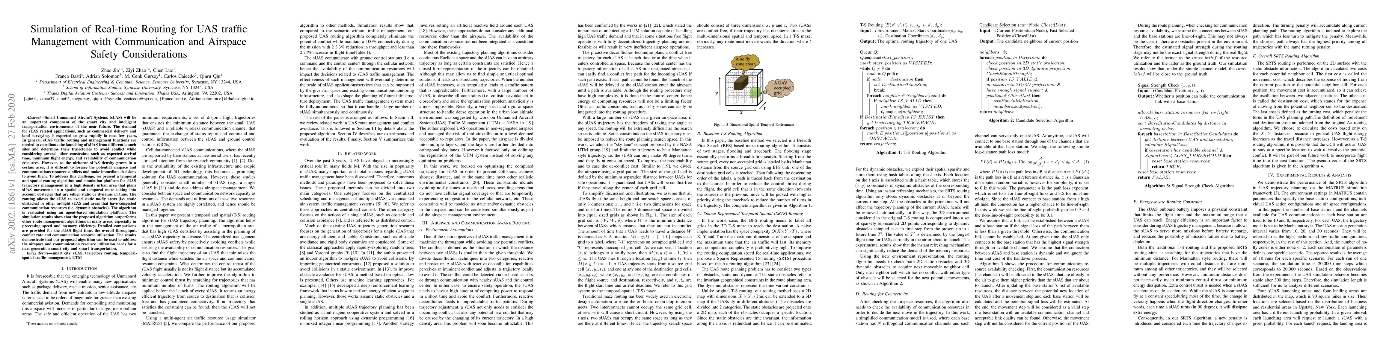 This research introduces a simulation platform and algorithm for real-time routing of small Unmanned Aircraft Systems (sUAS) in high-density urban areas, addressing airspace and communication resource conflicts. The algorithm outperforms others in processing speed and memory efficiency, ensuring safe and efficient sUAS operations for future smart city and transportation applications.