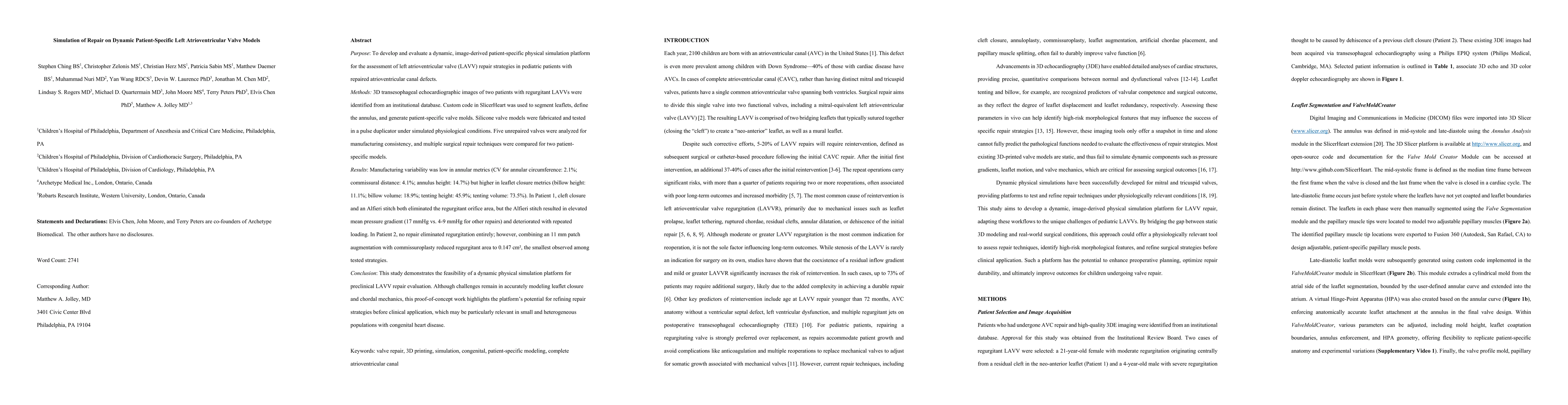 This study highlights the importance of 3D echocardiography modeling in simulating LAVV repairs and evaluating their efficacy.