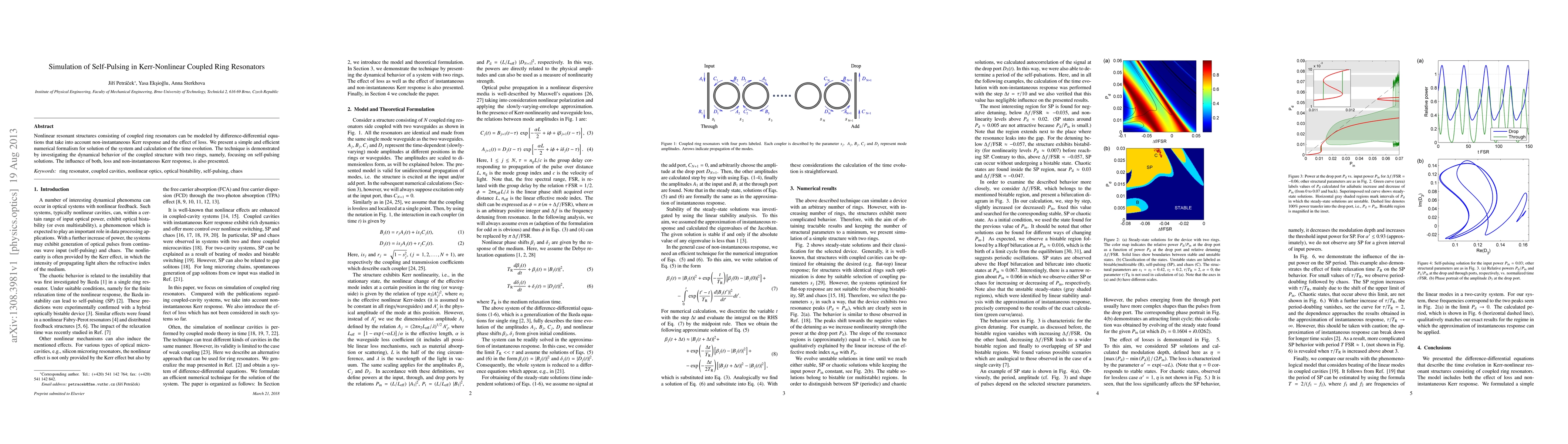 This paper presents a numerical method for simulating self-pulsing in coupled ring resonators, considering non-instantaneous Kerr effects and loss. The technique is applied to analyze the dynamical behavior of a two-ring resonator system, highlighting the impact of both loss and Kerr response on self-pulsing.