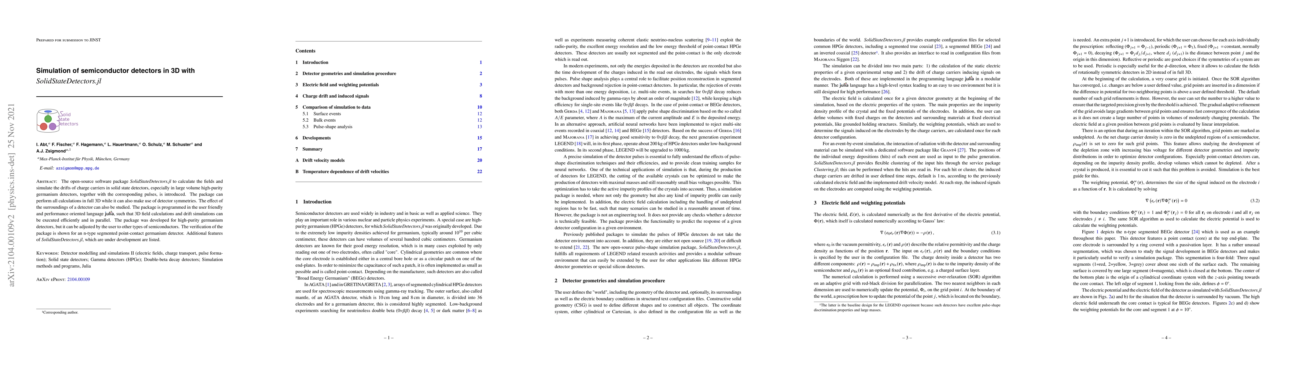 A new software package called SolidStateDetectors.jl simulates the behavior of semiconductor detectors in 3D space, allowing for efficient parallel processing and analysis of charge carrier drifts and detector responses.