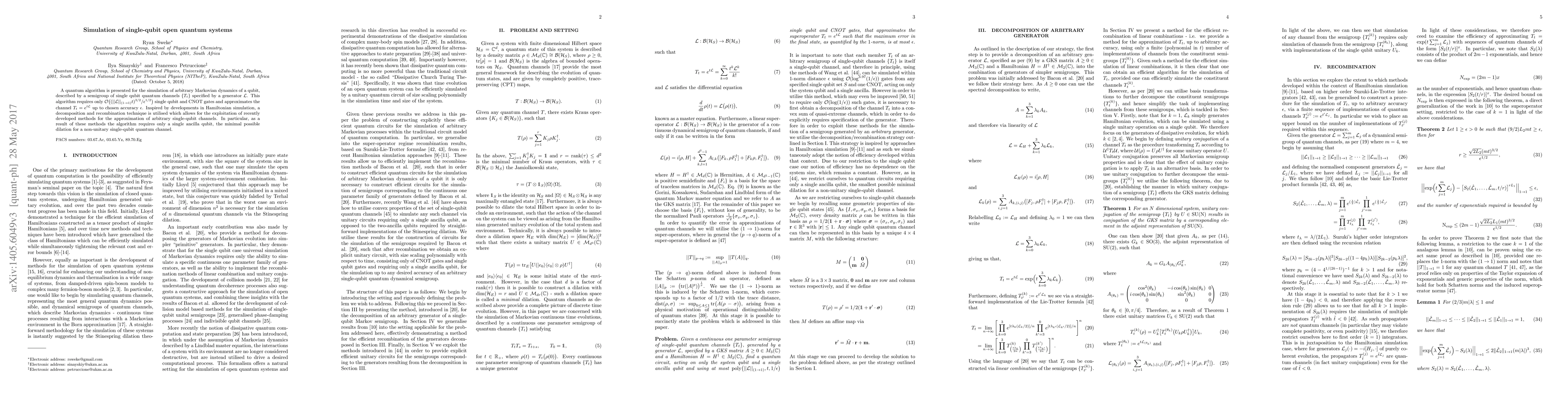 This paper presents a quantum algorithm for simulating the Markovian dynamics of a single qubit using a decomposition and recombination technique, requiring $\mathcal{O}\big((||\mathcal{L}||_{(1\rightarrow 1)} t)^{3/2}/\epsilon^{1/2}\big)$ single qubit and CNOT gates, and only one ancilla qubit. This approach leverages recent advancements in approximating single-qubit channels.