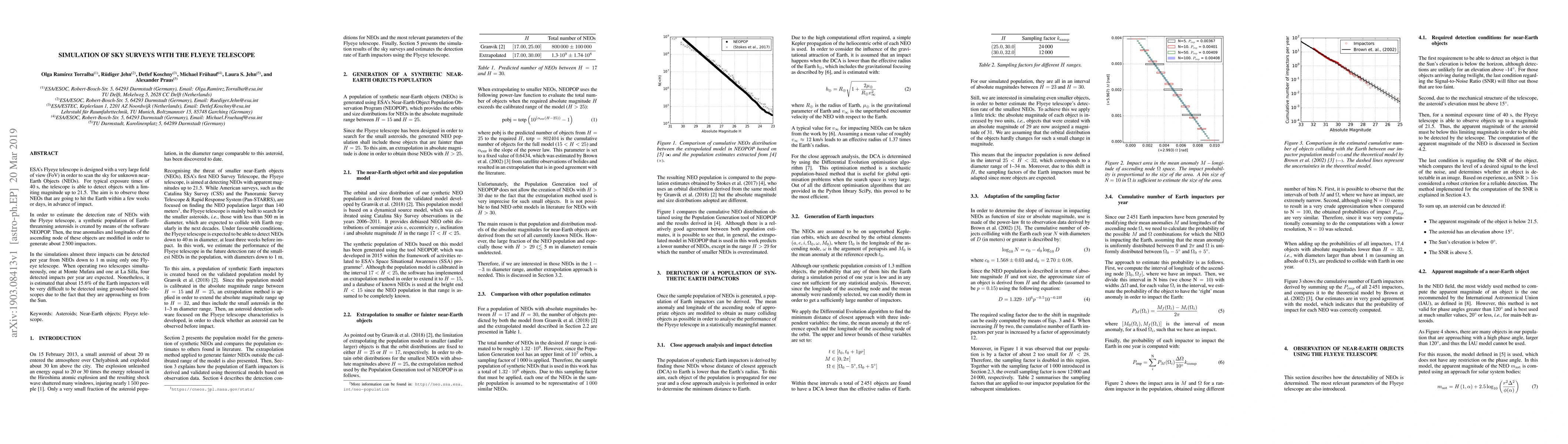 This paper simulates the detection capabilities of ESA's Flyeye telescope for near-Earth Objects (NEOs) using the NEOPOP software. It estimates that one Flyeye telescope can detect nearly three NEO impacts per year, while two telescopes together can detect four impacts annually, though 15.6% of impactors remain undetectable due to solar proximity.