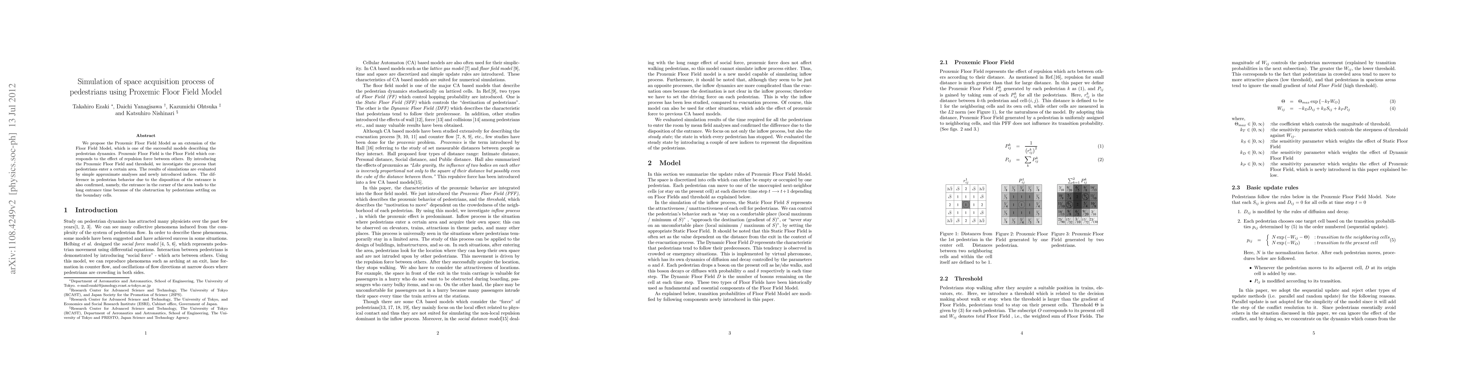 We propose the Proxemic Floor Field Model as an extension of the Floor Field Model, which is one of the successful models describing the pedestrian dynamics. Proxemic Floor Field is the Floor Field which corresponds to the effect of repulsion force between others. By introducing the Proxemic Floor Field and threshold, we investigate the process that pedestrians enter a certain area. The results of simulations are evaluated by simple approximate analyses and newly introduced indices. The difference in pedestrian behavior due to the disposition of the entrance is also confirmed, namely, the entrance in the corner of the area leads to the long entrance time because of the obstruction by pedestrians settling on the boundary cells.