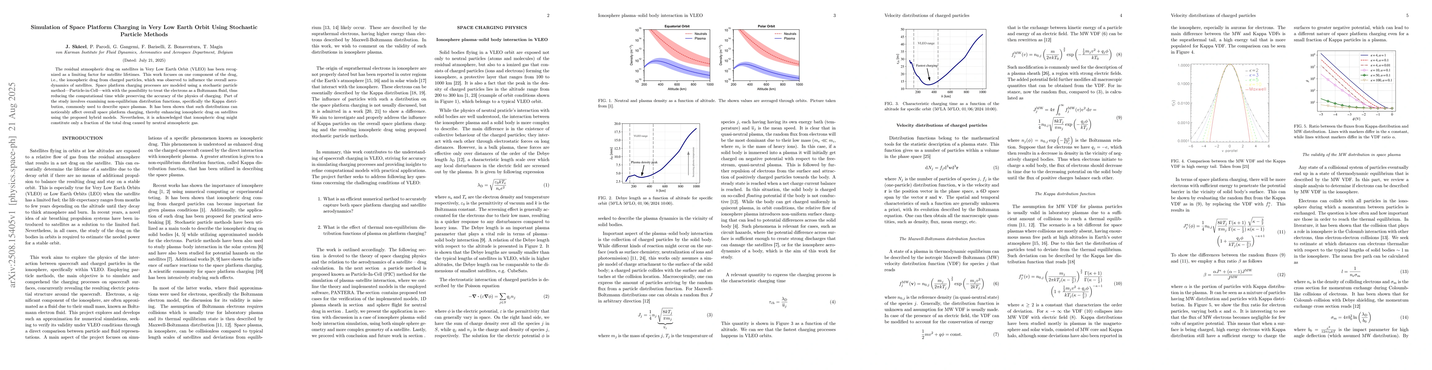 The residual atmospheric drag on satellites in Very Low Earth Orbit (VLEO) has been recognized as a limiting factor for satellite lifetimes. This work focuses on one component of the drag, i.e., the ionospheric drag from charged particles, which was observed to influence the overall aerodynamics of satellites. Space platform charging processes are modeled using a stochastic particle method, Particle-in-Cell, with with the possibility to treat the electrons as a Boltzmann fluid, thus reducing the computational time while preserving the accuracy of the physics of charging. Part of the study involves examining non-equilibrium distribution functions, specifically the Kappa distribution, commonly used to describe space plasmas. It has been shown that such distributions can noticeably affect overall space platform charging, thereby enhancing ionospheric drag on satellites using the proposed hybrid models. Nevertheless, it is acknowledged that ionospheric drag might constitute only a fraction of the total drag caused by neutral atmospheric gas.