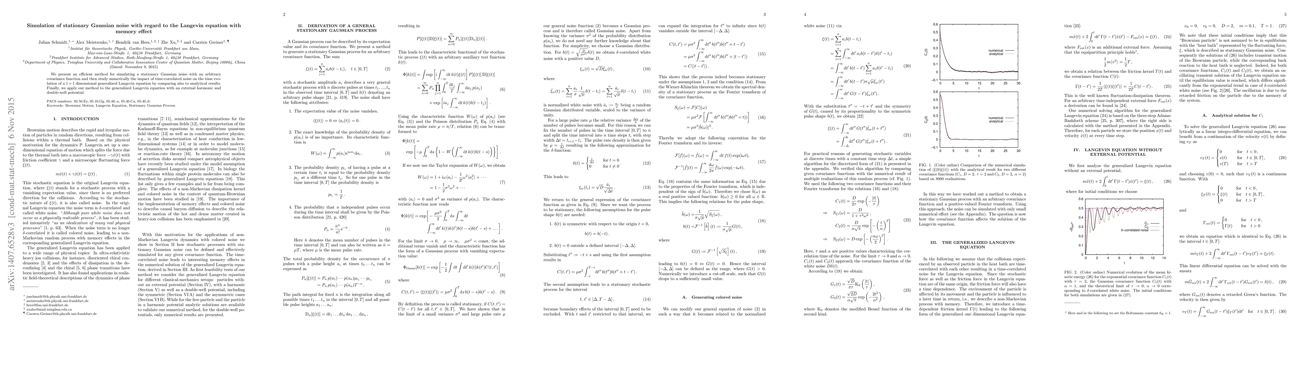This paper introduces an efficient simulation method for stationary Gaussian noise with customizable covariance functions and investigates its effect on the time evolution of a generalized Langevin equation, comparing numerical results with analytical solutions. The method is applied to scenarios involving harmonic and double-well potentials.