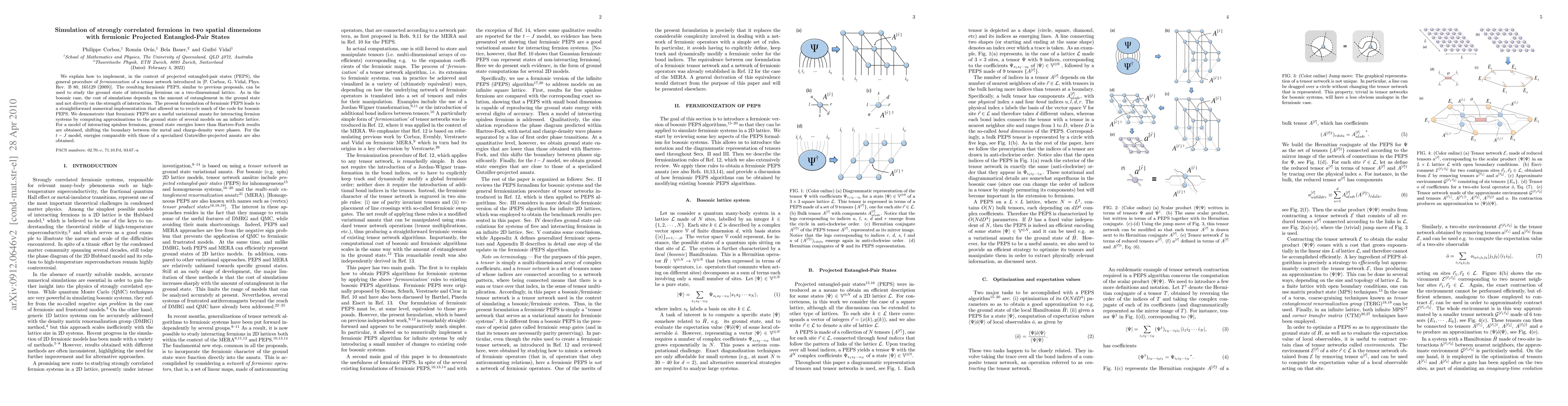 This paper details the implementation of fermionization in Projected Entangled-Pair States (PEPS) for simulating strongly correlated fermions in 2D. The method, reusing much of bosonic PEPS code, efficiently calculates ground state energies for fermionic systems, outperforming Hartree-Fock results for one model and matching specialized ansatzes for another.