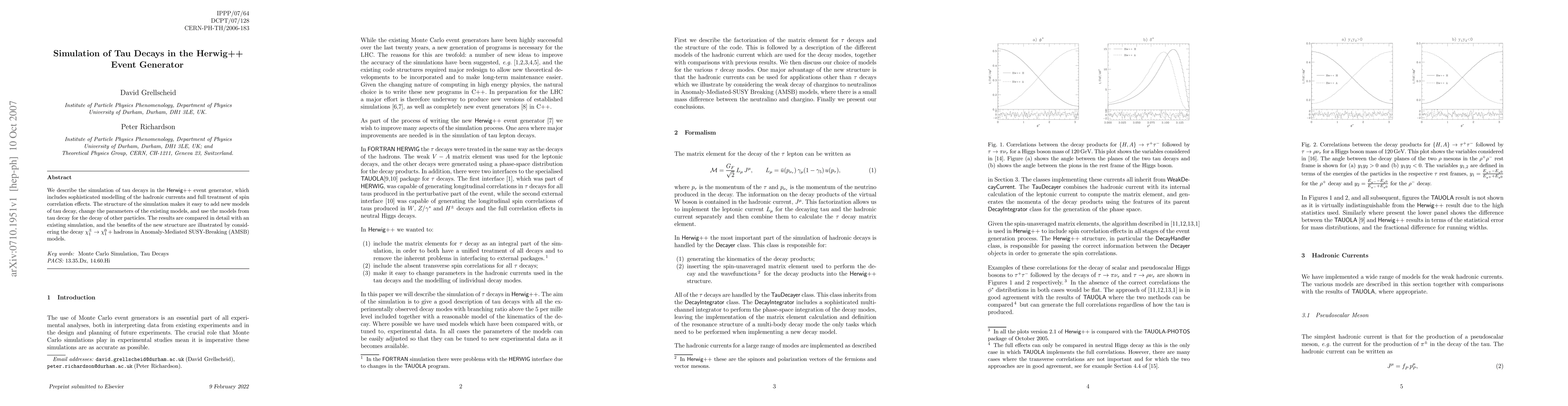 We describe the simulation of tau decays in the Herwig++ event generator, which includes sophisticated modelling of the hadronic currents and full treatment of spin correlation effects. The structure of the simulation makes it easy to add new models of tau decay,change the parameters of the existing models, and use the models from tau decay for the decay of other particles. The results are compared in detail with an existing simulation, and the benefits of the new structure are illustrated by considering the decay of the lightest chargino to the lightest neutralino in Anomaly-Mediated SUSY-Breaking models.