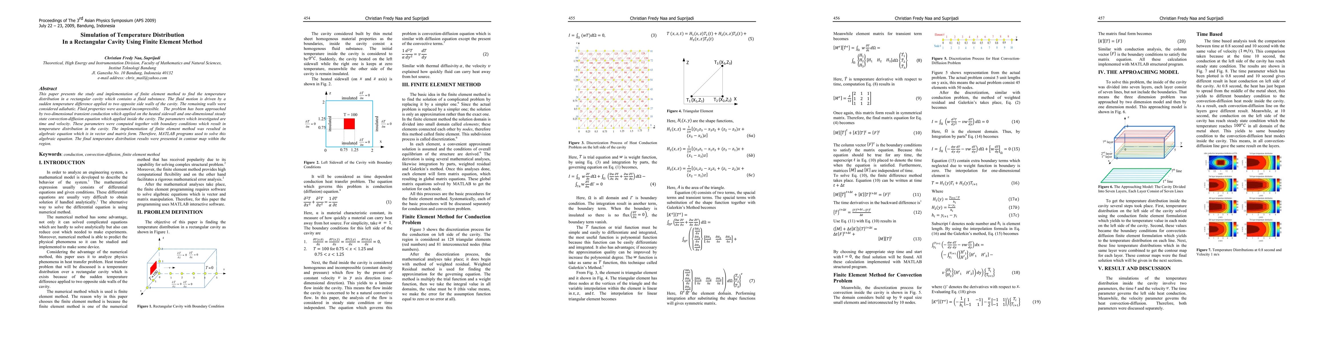 This paper uses the finite element method to simulate temperature distribution in a rectangular cavity with fluid, driven by temperature differences on opposite walls. MATLAB solves the resulting algebraic equations, presenting final results in contour maps.
