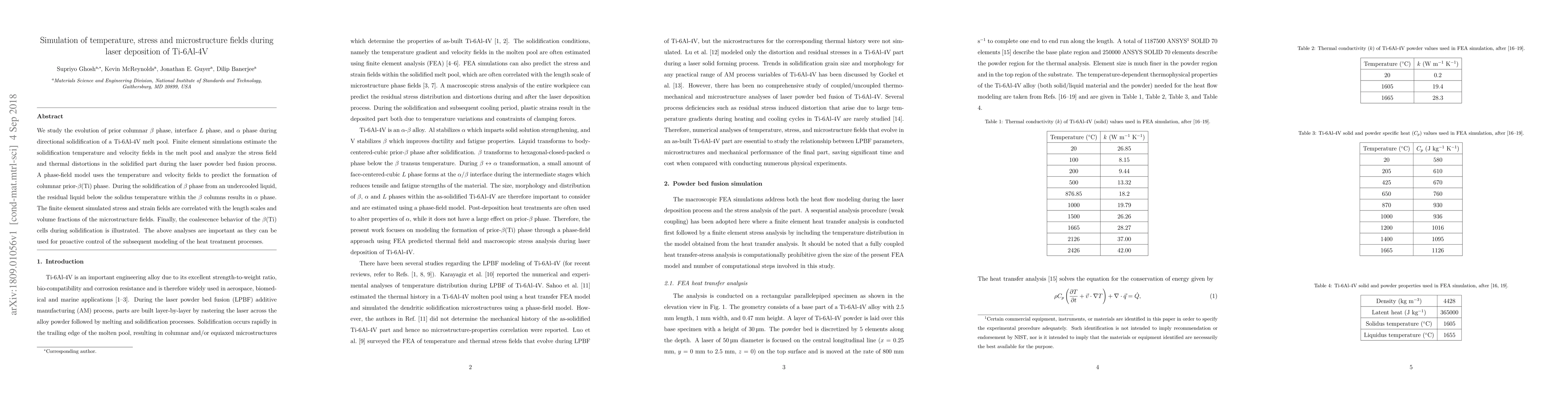This paper uses finite element simulations to study the temperature, stress, and microstructure fields during laser deposition of Ti-6Al-4V, focusing on the evolution of $\beta$, $L$, and $\alpha$ phases. It correlates simulated stress and strain fields with microstructure characteristics, aiming to inform proactive control of heat treatment processes.