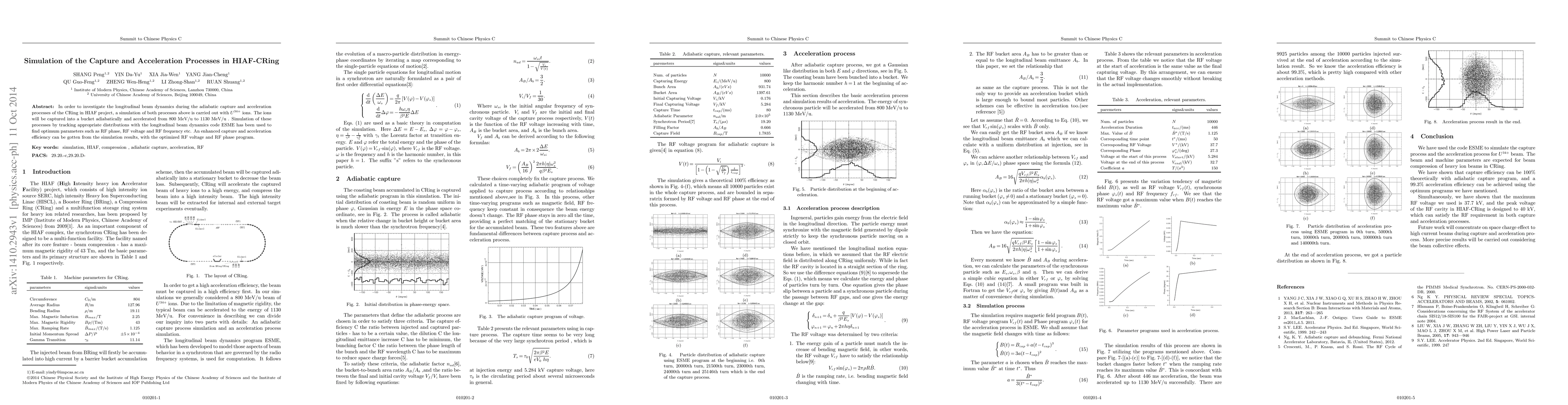Researchers simulated capture and acceleration processes of $U^{34+}$ ions in HIAF-CRing using ESME code to optimize RF parameters for enhanced efficiency.