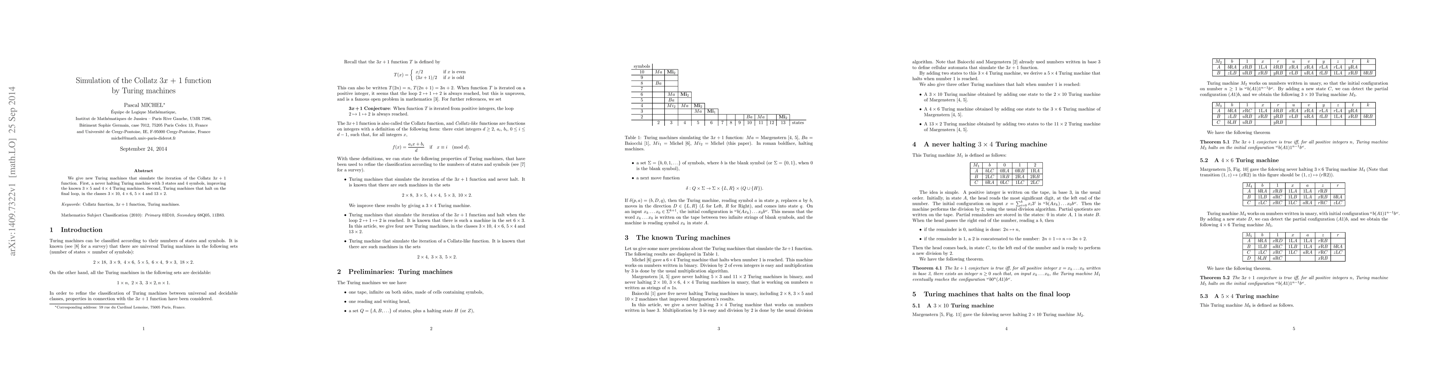 Researchers designed new Turing machines to simulate the Collatz 3x+1 function, improving existing models with fewer states and symbols, and creating haltable versions for specific cases.