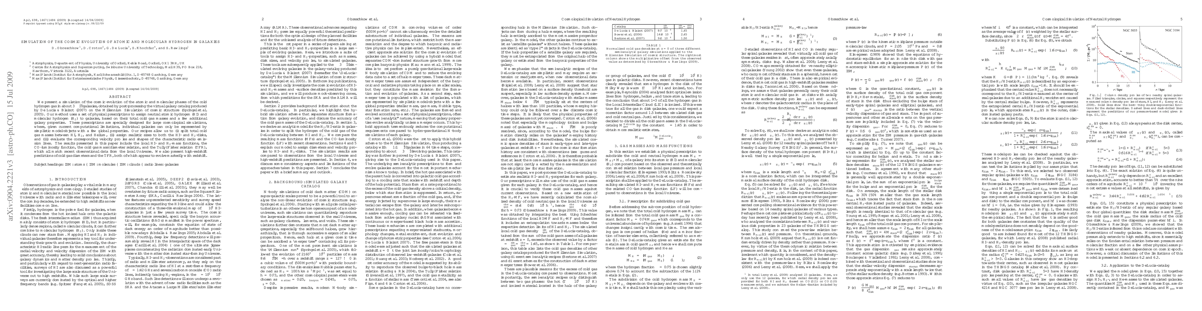 This paper simulates the cosmic evolution of atomic and molecular hydrogen in approximately 3e7 galaxies using a method that assigns HI and H2 based on total cold gas and galaxy properties. The results match recent observational data and predict significant evolution of cold gas diameters and the Tully-Fisher relation at high redshifts.