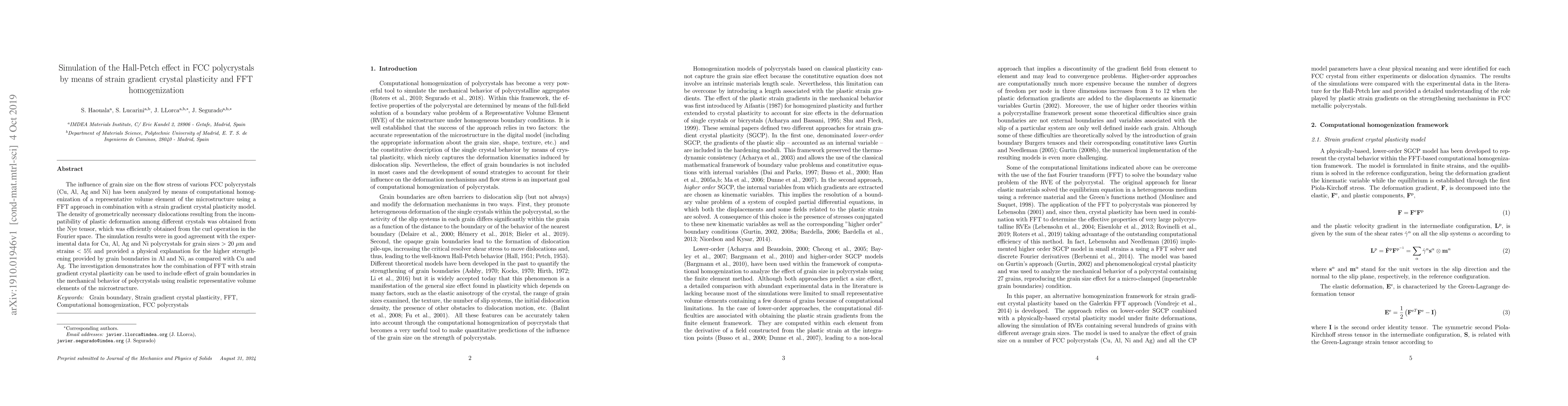 The research utilizes computational homogenization of a representative volume element (RVE) of the microstructure in combination with a strain gradient crystal plasticity (SGCP) model. The Nye tensor, efficiently obtained from the curl operation in Fourier space, provides the density of geometrically necessary dislocations (GNDs) resulting from deformation incompatibility among different crystals.