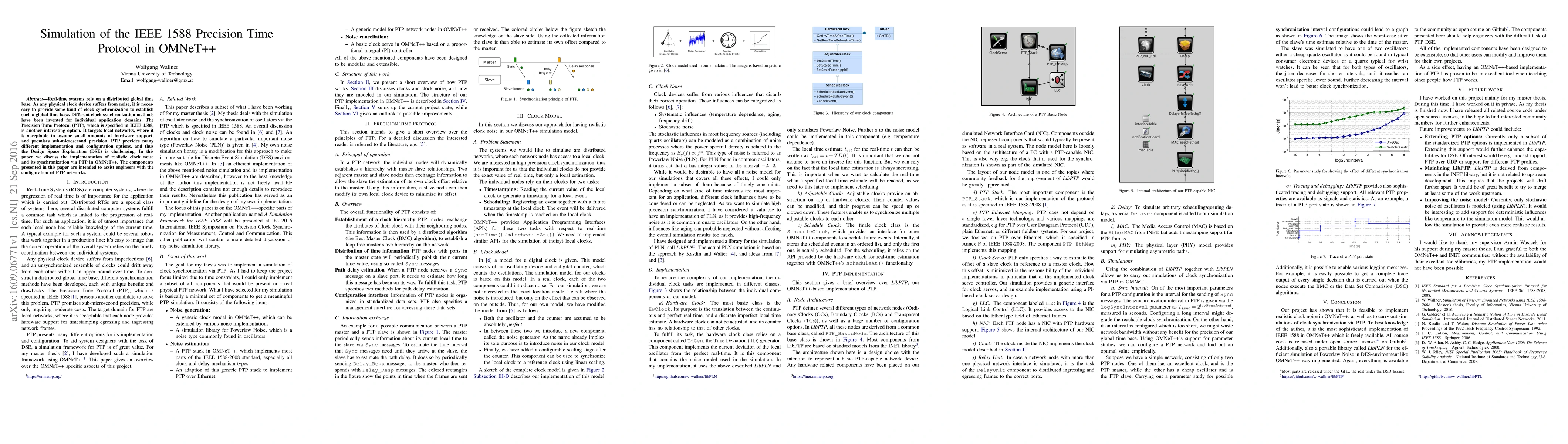 This paper details an OMNeT++ simulation of the IEEE 1588 Precision Time Protocol (PTP) to explore its configuration and performance under realistic clock noise conditions, aiming to assist engineers in setting up PTP networks for real-time systems.
