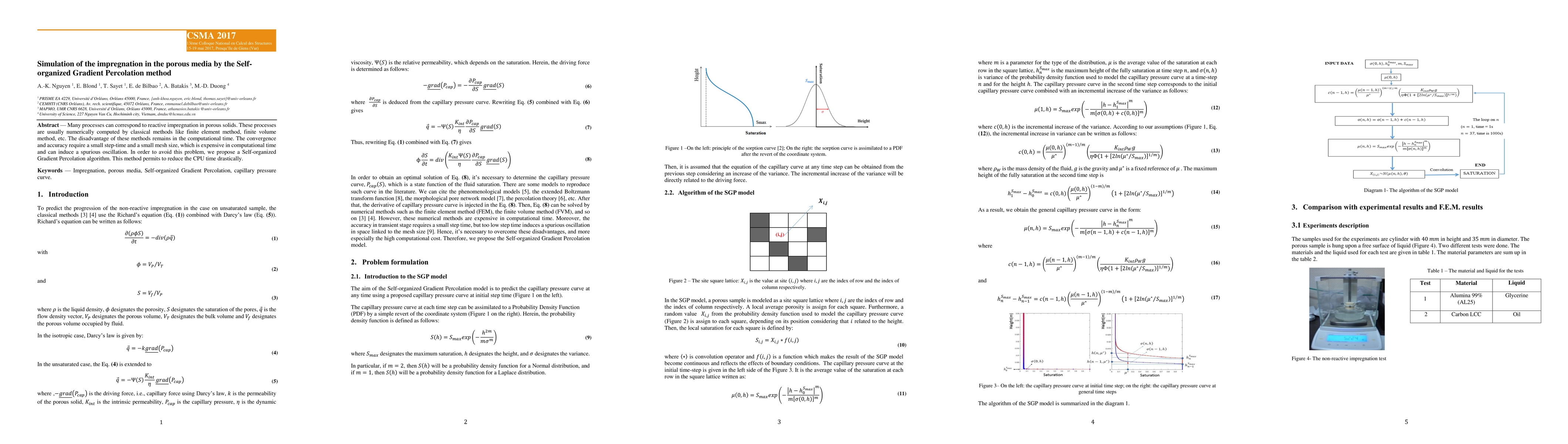 Many processes can correspond to reactive impregnation in porous solids. These processes are usually numerically computed by classical methods like finite element method, finite volume method, etc. The disadvantage of these methods remains in the computational time. The convergence and accuracy require a small step-time and a small mesh size, which is expensive in computational time and can induce a spurious oscillation. In order to avoid this problem, we propose a Self-organized Gradient Percolation algorithm. This method permits to reduce the CPU time drastically.