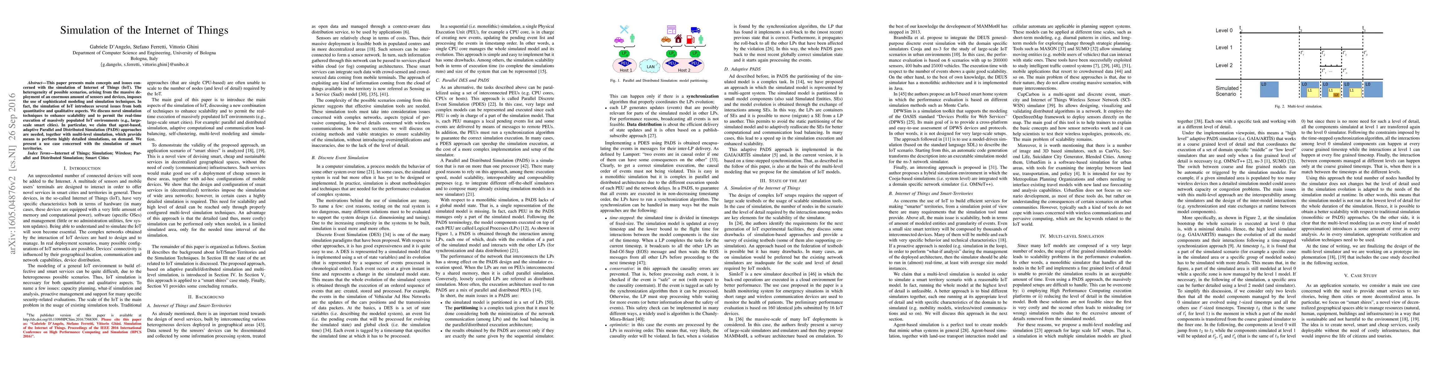 This paper explores advanced simulation techniques for the Internet of Things (IoT), emphasizing the need for scalable and real-time simulation of heterogeneous IoT environments. It proposes agent-based, adaptive Parallel and Distributed Simulation (PADS) approaches and multi-level simulation to handle the complexity and detail required for large-scale smart city simulations.