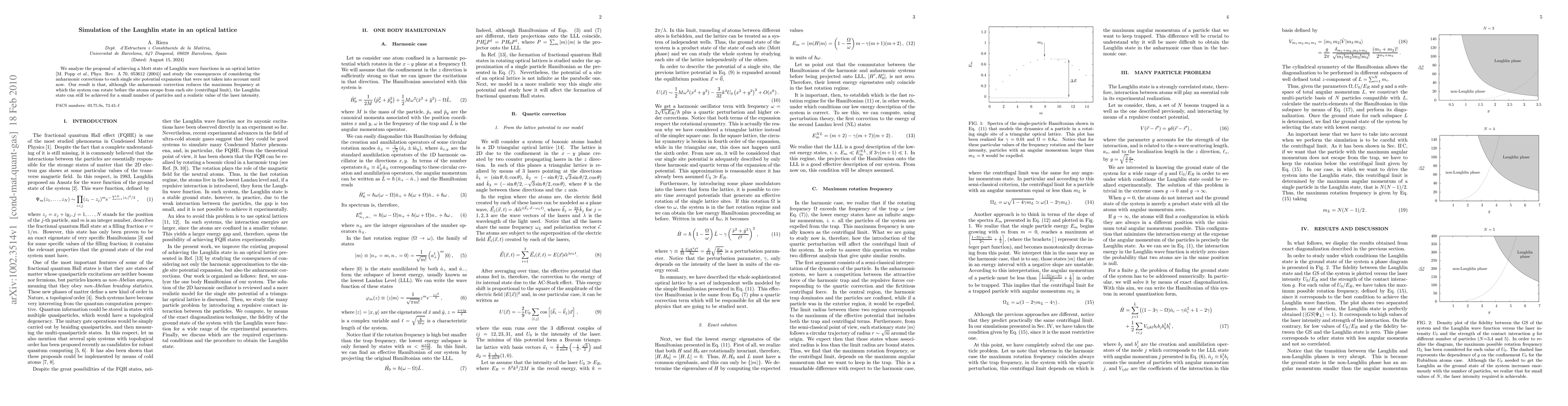 We analyze the proposal of achieving a Mott state of Laughlin wave functions in an optical lattice [M. Popp {\it et al.}, Phys. Rev. A 70, 053612 (2004)] and study the consequences of considering the anharmonic corrections to each single site potential expansion that were not taken into account until now. Our result is that, although the anharmonic correction reduces the maximum frequency at which the system can rotate before the atoms escape from each site (centrifugal limit), the Laughlin state can still be achieved for a small number of particles and a realistic value of the laser intensity.