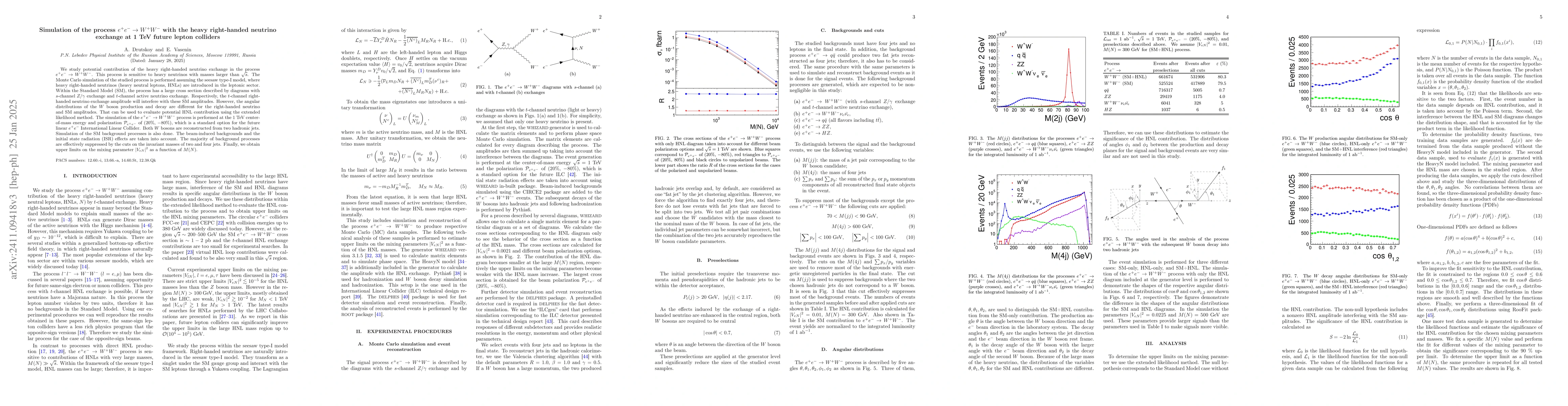 This research investigates the potential contribution of heavy right-handed neutrino exchange in the $e^+e^- \rightarrow W^+W^-$ process at 1 TeV future lepton colliders, using Monte Carlo simulations within the Seesaw type-I model. The study differentiates the angular distributions from Standard Model amplitudes to evaluate heavy neutral lepton contributions and obtains upper limits on the mixing parameter $|V_{eN}|^2$ as a function of neutrino mass.
