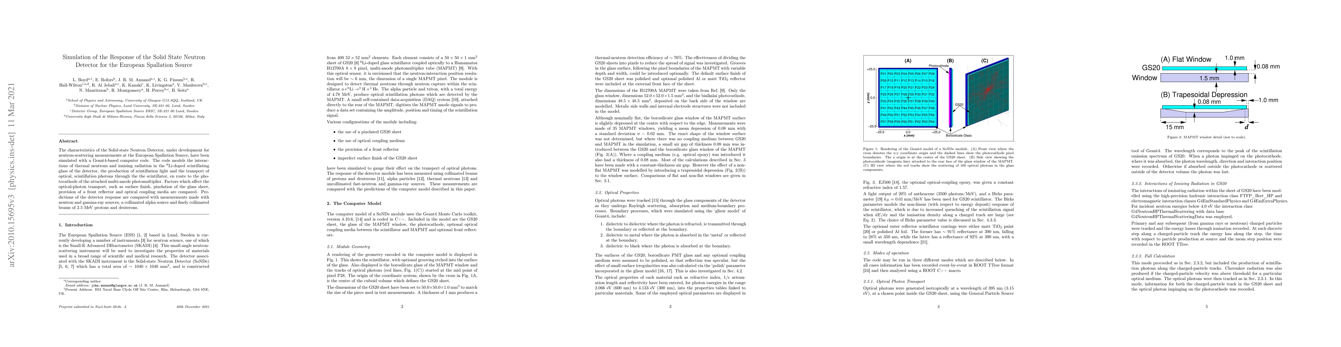 This paper simulates the performance of a Solid-state Neutron Detector for the European Spallation Source using a Geant4-based code, modeling neutron interactions and optical photon transport. The study compares various factors affecting photon transport and validates predictions with experimental measurements from neutron, gamma-ray, and proton sources.