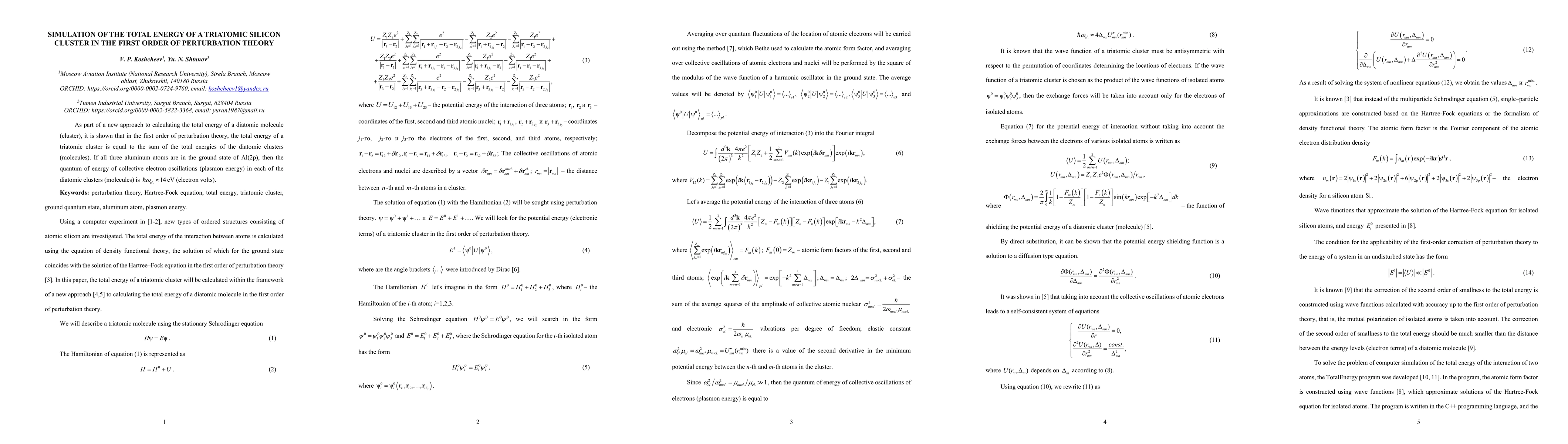 As part of a new approach to calculating the total energy of a diatomic molecule (cluster), it is shown that in the first order of perturbation theory, the total energy of a triatomic cluster is equal to the sum of the total energies of the diatomic clusters (molecules). If all three aluminum atoms are in the ground state of Al(2p), then the quantum of energy of collective electron oscillations (plasmon energy) in each of the diatomic clusters (molecules) is eV (electron volts).