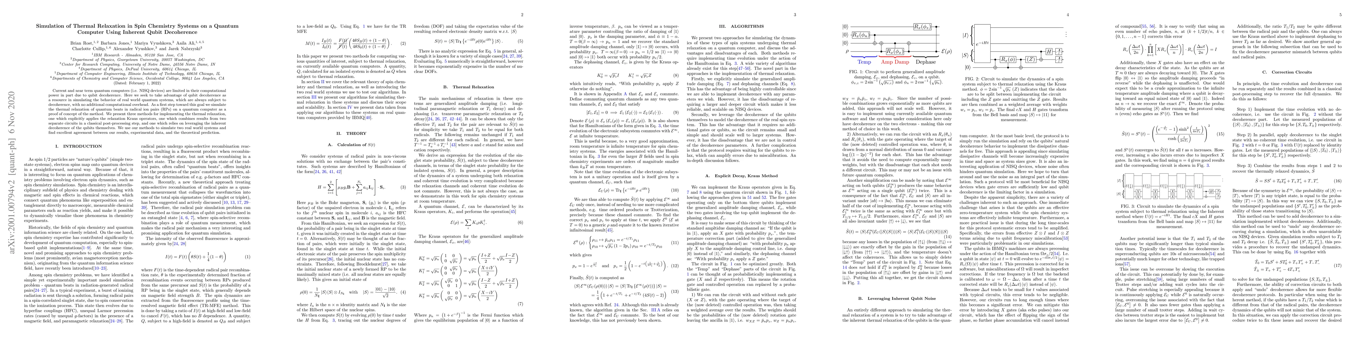This paper explores leveraging qubit decoherence in near-term quantum computers to simulate thermal relaxation in spin chemistry systems, demonstrating the method through quantum beat simulations in radical ion pairs. Three simulation methods are presented, showing excellent agreement with experimental data and theoretical predictions.