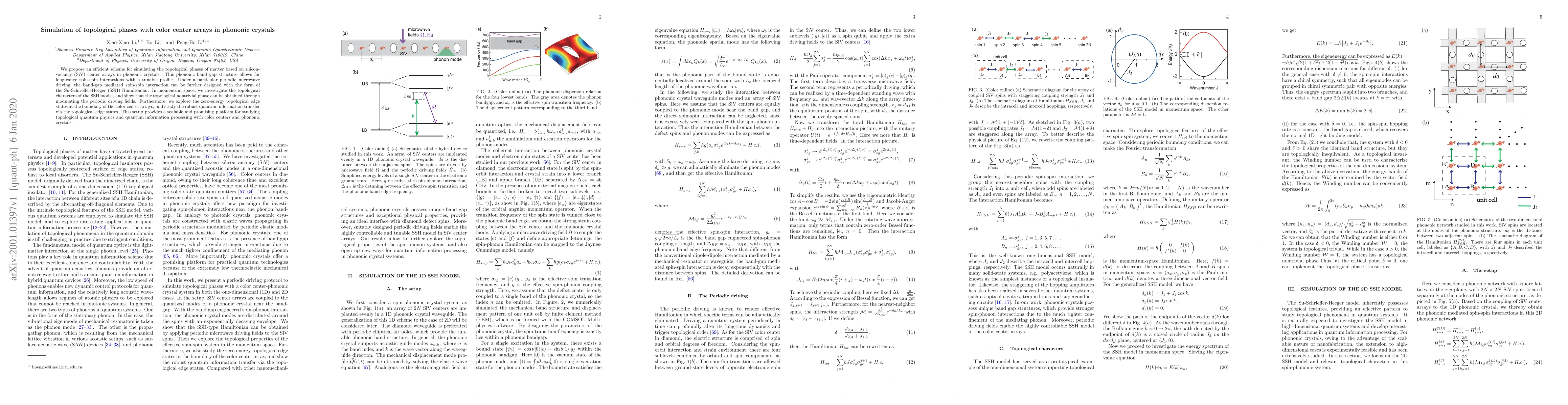 This research proposes a method to simulate topological phases using silicon-vacancy center arrays in phononic crystals, allowing for tunable spin-spin interactions and the formation of zero-energy edge states. The study demonstrates the potential for scalable quantum information processing through topological edge states.