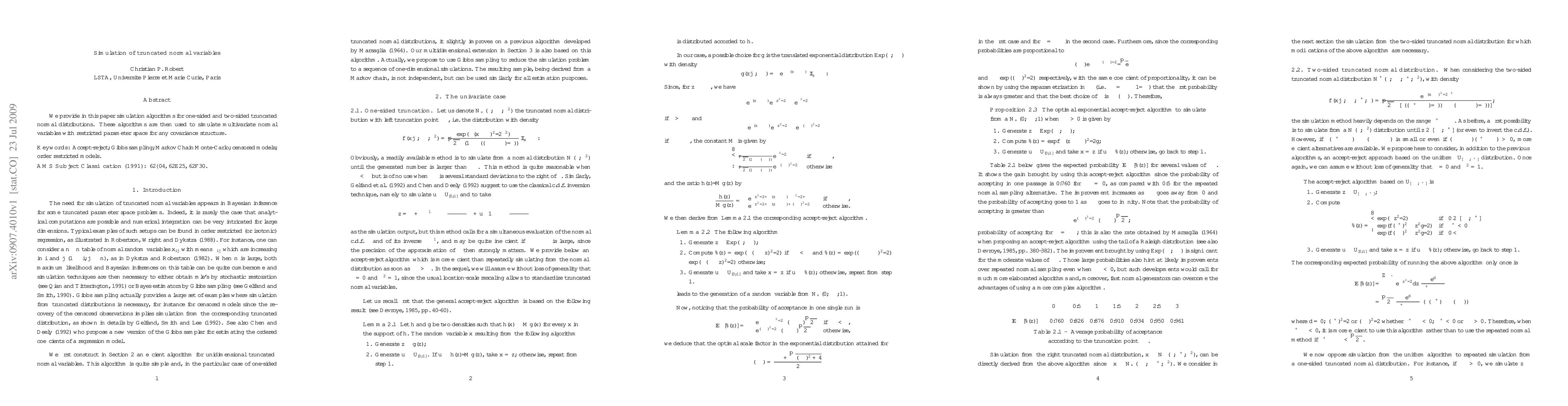 This paper presents algorithms for generating truncated normal variables, both one-sided and two-sided, and applies these to simulate multivariate normal distributions with specified covariance structures within a restricted parameter space.