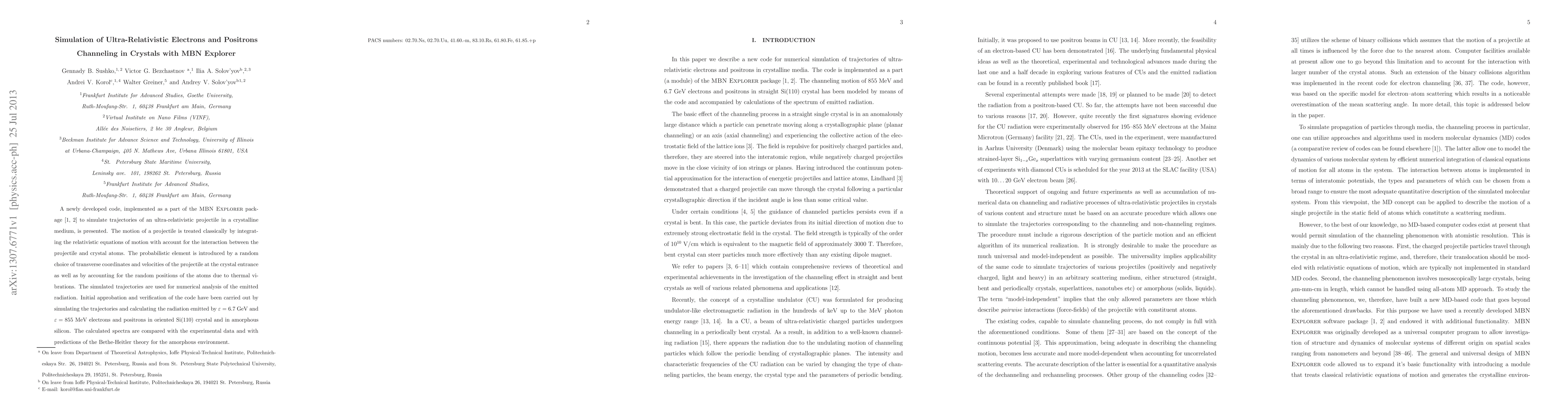 A newly developed code, implemented as a part of the \MBNExplorer package \cite{MBN_ExplorerPaper,MBN_ExplorerSite} to simulate trajectories of an ultra-relativistic projectile in a crystalline medium, is presented. The motion of a projectile is treated classically by integrating the relativistic equations of motion with account for the interaction between the projectile and crystal atoms. The probabilistic element is introduced by a random choice of transverse coordinates and velocities of the projectile at the crystal entrance as well as by accounting for the random positions of the atoms due to thermal vibrations. The simulated trajectories are used for numerical analysis of the emitted radiation. Initial approbation and verification of the code have been carried out by simulating the trajectories and calculating the radiation emitted by $\E=6.7$ GeV and $\E=855$ MeV electrons and positrons in oriented Si(110) crystal and in amorphous silicon. The calculated spectra are compared with the experimental data and with predictions of the Bethe-Heitler theory for the amorphous environment.
