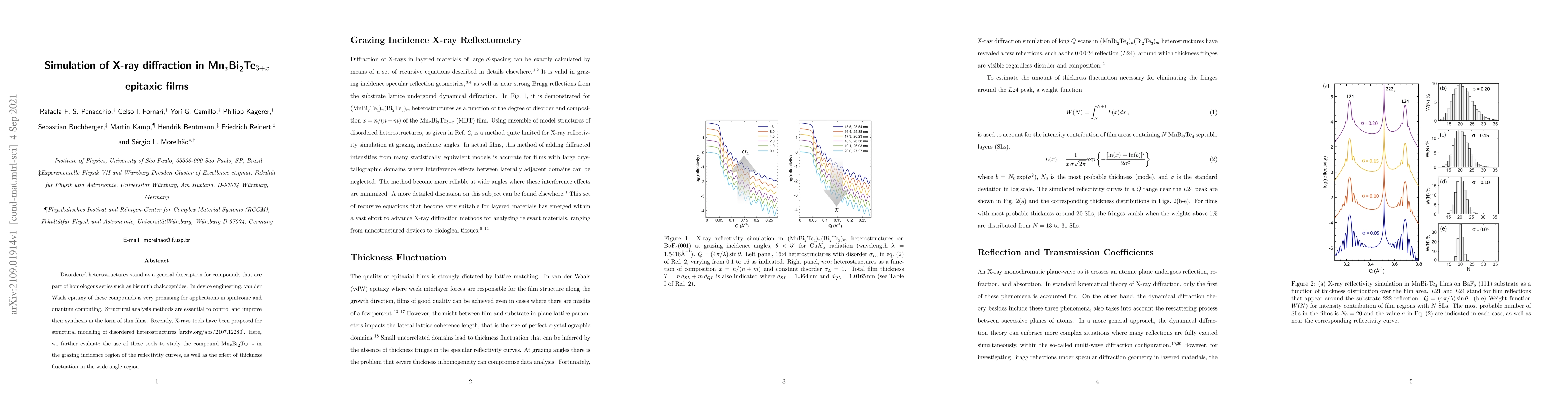 Disordered heterostructures stand as a general description for compounds that are part of homologous series such as bismuth chalcogenides. In device engineering, van der Waals epitaxy of these compounds is very promising for applications in spintronic and quantum computing. Structural analysis methods are essential to control and improve their synthesis in the form of thin films. Recently, X-rays tools have been proposed for structural modeling of disordered heterostructures [arXiv:2107.12280]. Here, we further evaluate the use of these tools to study the compound Mn$_x$Bi$_2$Te$_{3+x}$ in the grazing incidence region of the reflectivity curves, as well as the effect of thickness fluctuation in the wide angle region.