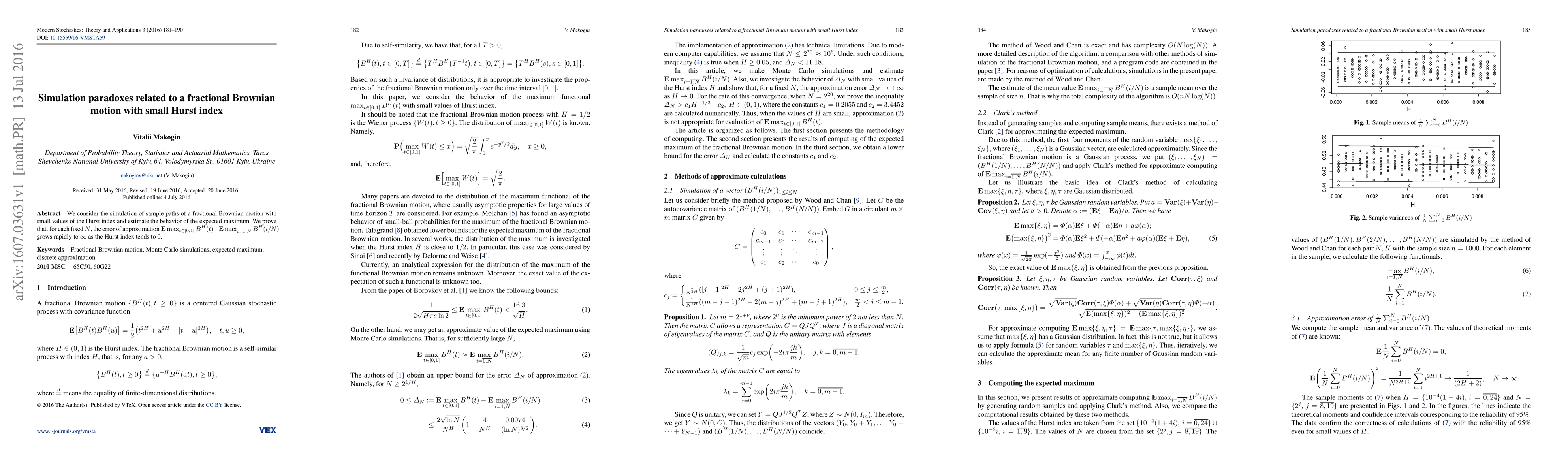 This paper investigates the simulation of fractional Brownian motion with small Hurst indices, showing that the approximation error for the expected maximum grows rapidly to infinity as the Hurst index approaches 0. The study highlights the challenges in accurately simulating such processes.