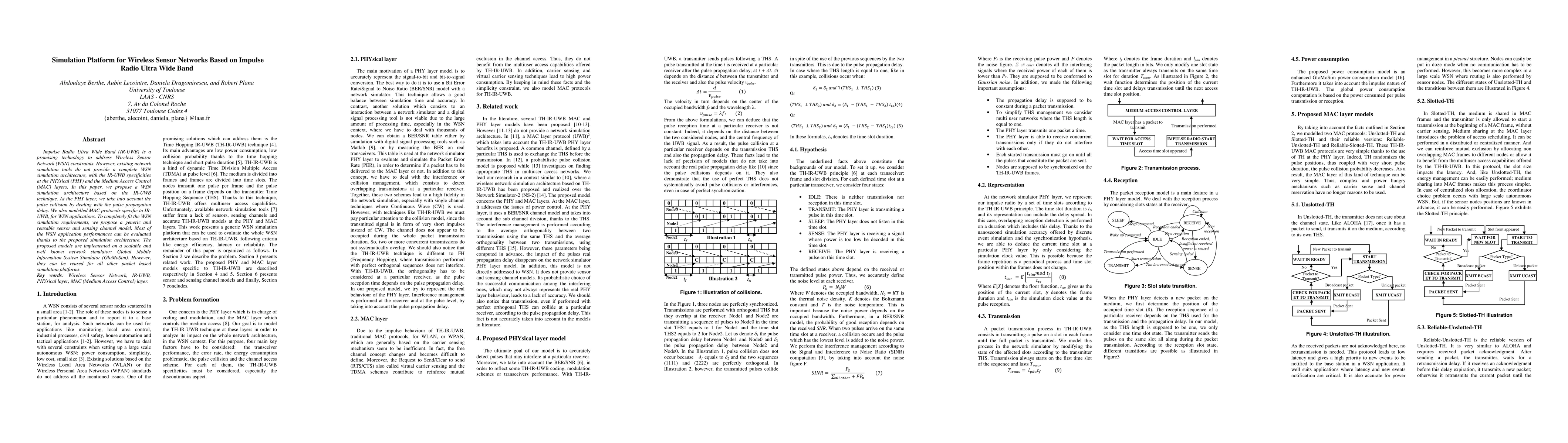This paper proposes a simulation platform for Wireless Sensor Networks (WSN) based on Impulse Radio Ultra Wide Band (IR-UWB), addressing the lack of complete simulation tools for WSN with IR-UWB specifics. The platform includes models for pulse collision, pulse propagation delay, and specific MAC protocols, implemented in the GloMoSim simulator.