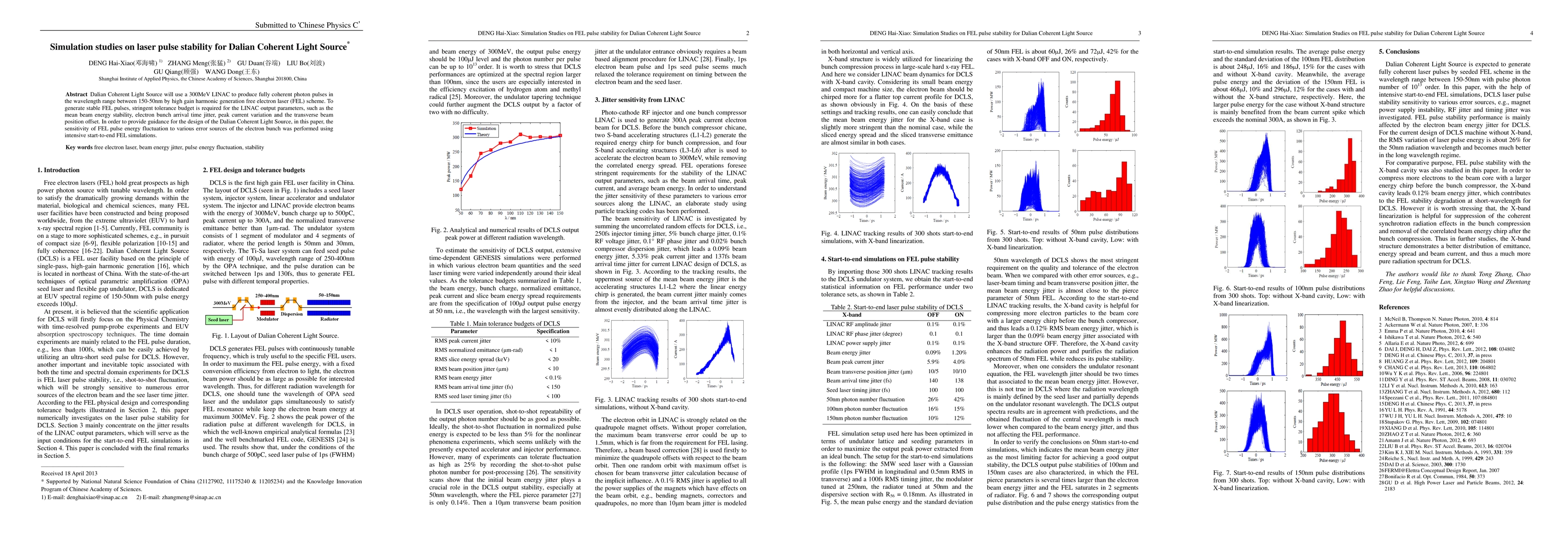This paper investigates the stability of laser pulses for the Dalian Coherent Light Source using simulations, focusing on the impact of LINAC output parameters on the high gain harmonic generation free electron laser. The study aims to guide the design by analyzing the sensitivity of FEL pulse energy to various electron bunch errors.